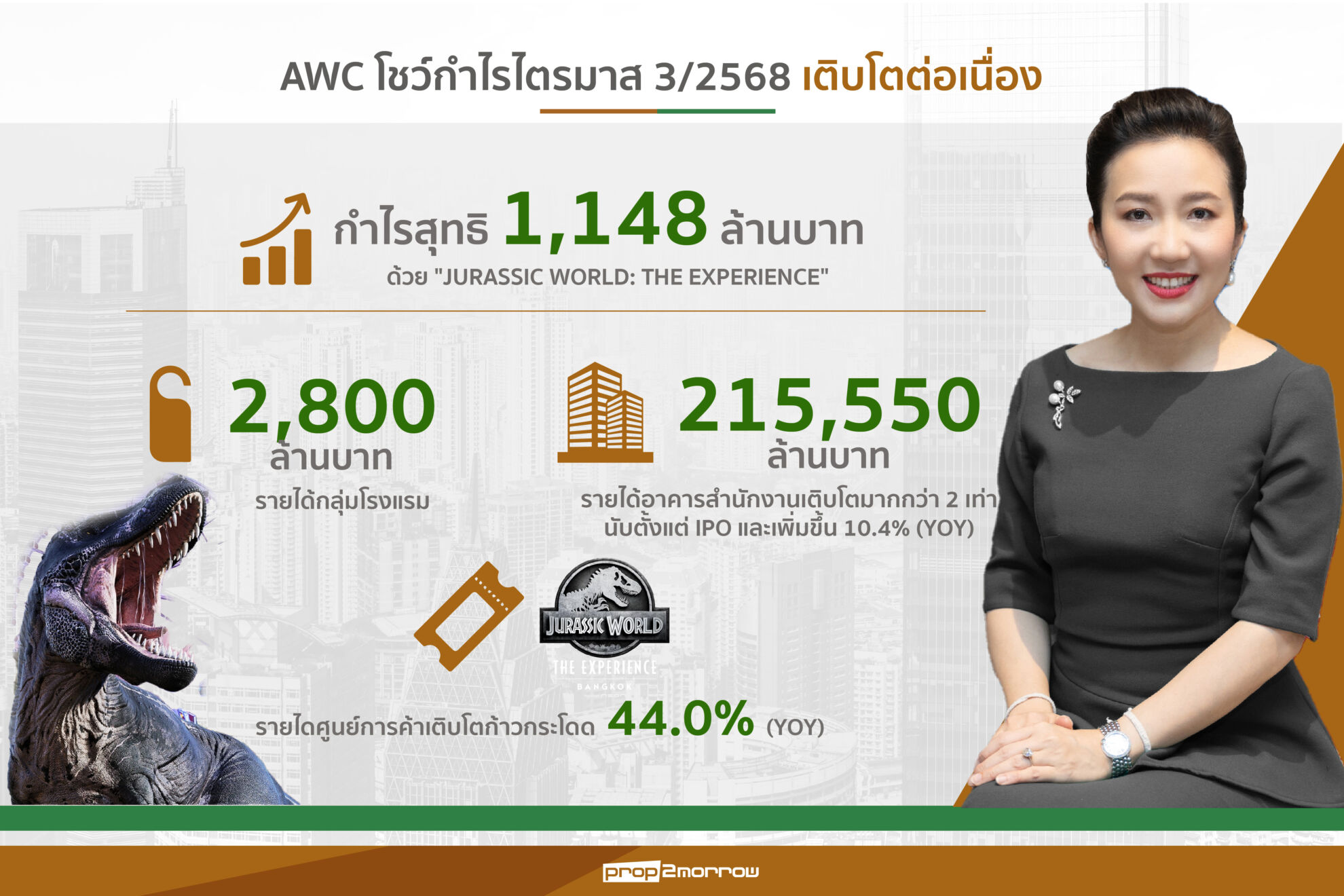 แอสเสท เวิรด์ คอร์ปฯโชว์รายได้ไตรมาส 3/68แตะ 5,193 ล้านบาท เติบโต 7.2% “Jurassic World: The Experience”ฉุดรายได้เพิ่ม