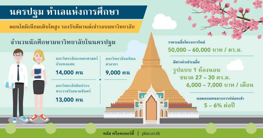 พลัส พร็อพเพอร์ตี้ เผยผลสำรวจอสังหาฯ พื้นที่ จ.นครปฐม มีกำลังซื้อเติบโตโดดเด่น ยอดขายคอนโดมิเนียมเติบโตดีสุดในรอบ 1 ปีที่ผ่านมา โดยเฉพาะโซน พุทธมณฑล กำแพงแสน และตัวเมืองนครปฐม เหตุเป็นที่ตั้งของมหาวิทยาลัยชื่อดัง ชี้ทิศทางในอนาคตสดใสจากปัจจัยบวกภาครัฐพัฒนาโครงการคมนาคม อาทิ รถไฟรางคู่ รถไฟความเร็วสูง และมอเตอร์เวย์ ช่วยหนุนราคาอสังหาริมทรัพย์เติบโตต่อเนื่อง