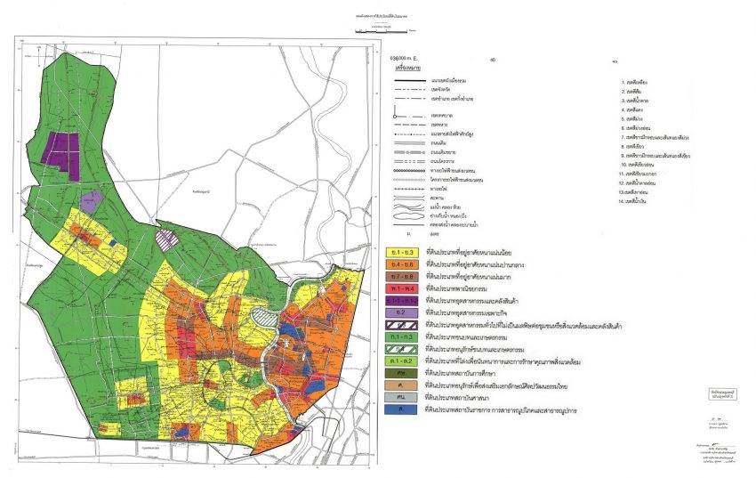 โดยพื้นที่ที่อาคารอยู่อาศัยรวมเกิน 10,000 ตารางเมตรที่สามารถดำเนินการได้โดยไม่มีเงื่อนไขคือ ย.7,8 ส่วนพื้นที่พ.3,4 สามารถดำเนินการได้แต่ต้องติดถนน 30 เมตร