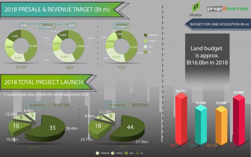 ด้านภาพรวมตลาดอสังหาริมทรัพย์ ปี 2561 ในเขตกรุงเทพฯ และปริมณฑล คาดว่าจะมียอดขายเติบโตจากปีที่ผ่านมาประมาณ 5% มีมูลค่าตลาดรวมประมาณ 420,000 ล้านบาท โดยมีปัจจัยสนับสนุนโครงการลงทุนด้านการคมนาคมของภาครัฐบาล