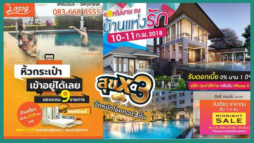 ลลิล พร็อพเพอร์ตี้ฯขนกว่า 40 โครงการกทม.-ปริมณฑล-ตจว. อัดโปรโมชั่นดอกเบี้ย 0% นาน 1 ปี คู่รักที่สนใจซื้อโครงการ รับสิทธิ์ทำสัญญาเพียง 1บาท ฟรีทุกค่าใช้จ่ายวันโอน ขณะที่ชาญอิสสระ จัดMIDNIGHT SALE  วันเดียว ราคาทุน”ราคาเริ่มต้นที่ 1.4 ล้านบาท ส่วนดี-แลนด์ ขน 6 โครงการ รับโชค 3 ชั้น “สุข X 3” ด้านมารวย เรียลเอสเตทฯส่งความสุขตอนรับเทศกาลตรุษจีน – วาเลนไทน์ อัดแคมเปญพิเศษ“หิ้วกระเป๋าเข้าอยู่เลย – พร้อมรับอั่งเปา ลุ้นโชค”