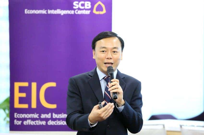 นายยรรยง ไทยเจริญ รองกรรมการผู้จัดการ ศูนย์วิจัยเศรษฐกิจและธุรกิจ ธนาคารไทยพาณิชย์ จำกัด(มหาชน) หรือ SCB EIC เปิดเผยว่า อีไอซีเตรียมทบทวนประมาณการอัตราการขยายตัวทางเศรษฐกิจของไทย (GDP) ในช่วงปลายไตรมาส 2/61 จากปัจจุบันที่ยังคงประมาณการณ์ไว้ 4% จากปีก่อนที่ขยายตัวได้ 3.9% โดยได้รับปัจจัยหนุนตามกำลังซื้อจากต่างประเทศที่ขยายตัวดีและการลงทุนที่ฟื้นตัวชัดเจนมากขึ้น โดยพื้นฐานเศรษฐกิจโลกที่แข็งแกร่งส่งผลให้ทั้งภาคการท่องเที่ยว และการส่งออกสินค้าของไทยจะยังเป็นแรงขับเคลื่อนที่สำคัญในปีนี้ ขณะเดียวกันยังคงประเมินการส่งออกปีนี้ขยายตัวที่ 5% จากปีก่อนที่ขยายตัวที่ 9.8% และจำนวนนักท่องเที่ยวต่างชาติเพิ่มขึ้นที่ 7.9% หรือ 38.2 ล้านคน จากปีก่อนที่มีนักท่องเที่ยวเติบโต 8.8%