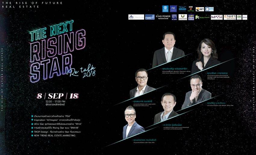 พบกับงานThe Next Rising Star Re talk 2018 กับสุดยอดวิทยากร ที่จะมาแชร์ประสบการณ์ในการสร้างธุรกิจ ให้ประสบความสำเร็จ และ เทรนด์การตลาดอสังหาในยุคปัจจุบัน