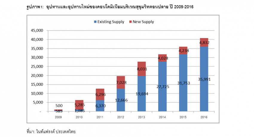 จากข้อมูลปี 2559 ทำเลนี้มีอุปทานใหม่รวมทั้งสิ้น 4,832 หน่วย โดยจากทั้งหมดนี้กว่าร้อยละ 64 เป็นหน่วยที่มาจากโครงการห้องชุดที่เป็นอาคารสูง (High Rise) ในขณะที่ร้อยละ 36 มาจากโครงการห้องชุดที่เป็นอาคารเตี้ย (Low Rise) หากจำแนกเป็นเกรดของคอนโดมิเนียม พบว่าคอนโดมิเนียมในทำเลนี้เป็นคอนโดมิเนียมเกรดบีมากที่สุด มีสัดส่วนร้อยละ 41 ของอุปทานทั้งหมด ตามด้วยคอนโดมิเนียมเกรดซี ที่มีสัดส่วนร้อยละ 37 ของอุปทาน ส่วนสุดท้ายร้อยละ 22 ของอุปทาน เป็นคอนโดมิเนียมเกรดเอ ซึ่งมีสัดส่วนที่สูงเพิ่มขึ้นมากกว่าปี 2558 ที่มีสัดส่วนคอนโดมิเนียมเกรดเอเพียงแค่ร้อยละ 15 ของอุปทานในทำเลนี้ ซึ่งหมายความว่าทำเลนี้มีศักยภาพในการเติบโตทางด้านราคาขาย เป็นที่น่าสนใจว่ามีตลาดคอนโดมิเนียมเกรดเอในบริเวณสุขุมวิทมีแนวโน้มการพัฒนาเพิ่มมากขึ้นในพื้นที่ตอนปลายตั้งแต่ปี 2015
