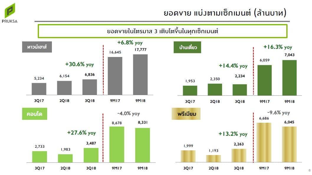 จากยอดขายที่ดูรายเซ็กเมนต์ ณ สิ้นไตรมาส 3 ปี 2561 นั้นมีรายละเอียดดังนี้