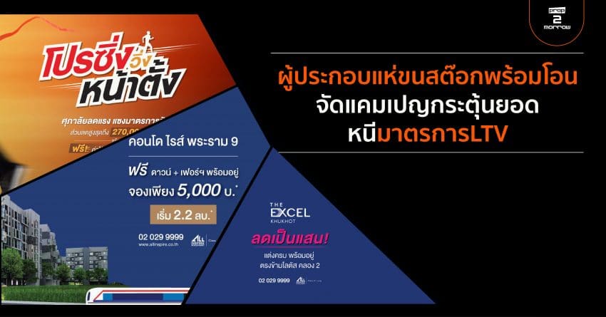 จากที่ธนาคารแห่งประเทศไทย (ธปท.) ได้ประกาศหลักเกณฑ์การกำกับดูแลสินเชื่อเพื่อที่อยู่อาศัยใหม่ ในการกำหนดเงินดาวน์ขั้นต่ำ หรืออัตราส่วนสินเชื่อต่อมูลค่าหลักประกัน (Loan to Value : LTV) สำหรับการผ่อนที่อยู่อาศัยพร้อมกัน 2 หลังขึ้นไป โดยมีผลตั้งแต่ 1 เมษายน 2562 ส่งผลให้ที่ผ่านมา ผู้ประกอบการเร่งระบายสต๊อกให้ได้มากที่สุด ซึ่งต่อเนื่องมาถึงต้นปี2562 แล้วยังมีการระบายสต๊อกอีกอย่างต่อเนื่อง ด้วยการจัดแคมเปญกระตุ้นยอดขาย ซึ่งหนีไม่พ้นการมอบส่วนลด ฟรีค่าธรรมเนียม และเงื่อนไขต่างๆมากมาย