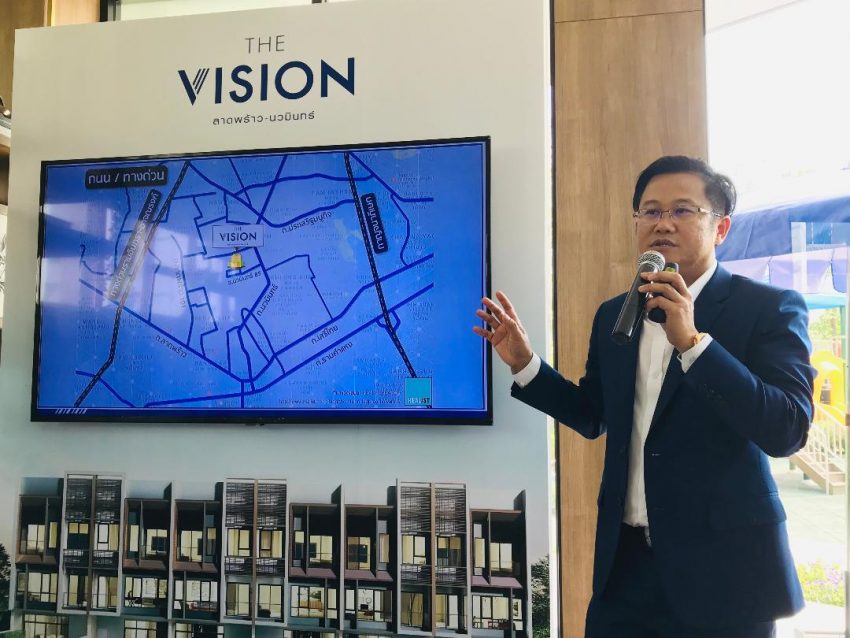 นายธนากร กล่าวเพิ่มเติมว่า จากการที่ดัชนีราคาคอนโดฯ เพิ่มสูงขึ้นมาก เนื่องจากราคาที่ดินที่ปรับสูงขึ้นมาอย่างต่อเนื่อง ทำให้ราคาขายสูงกว่าบ้านเดี่ยวและทาวน์โฮม ซึ่งการที่ดัชนีราคาของบ้านเดี่ยวและทาวน์โฮม ยังไม่ปรับตัวขึ้นสูงมาก ทำให้ผู้บริโภคมีโอกาสในการซื้อได้ง่ายกว่าคอนโดฯ และเป็นกลุ่มลูกค้าที่เป็นเรียลดีมานด์อย่างแท้จริง ทั้งนี้จากการที่บริษัททำการสำรวจทาวน์เฮาส์บริเวณถนนนวมินทร์ตอนต้น ตั้งแต่สี่แยกบางกะปิ-ถนนประเสริฐมนูกิจ ในรัศมี 3 กิโลเมตร ตั้งแต่ช่วงปี 2556-2561 พบว่า มีการพัฒนาโครงการแนวราบทั้งหมด 11 โครงการ และปัจจุบันปิดการขายไปแล้ว 5 โครงการ ส่วนอีก 6 โครงการอยู่ในระหว่างการเปิดขาย โดย 2 โครงการจะเป็นบ้านเดี่ยว และอีก 4 โครงการจะเป็นทาวน์โฮม ซึ่งรวมโครงการ “เดอะ วิชั่น ลาดพร้าว-นวมินทร์” ด้วย ซึ่ง 3 โครงการทาวน์โฮมที่เปิดการขายไปก่อนหน้านี้ ต่างมียอดขายตั้งแต่ 96.1%-98% เป็นการบ่งบอกว่าอัตราการดูดซับในย่านดังกล่าวยังดีต่อเนื่อง ในขณะที่โครงการ “เดอะ วิชั่น ลาดพร้าว-นวมินทร์” ยังไม่ได้เปิดขาย แต่มั่นใจว่าจะได้รับการตอบรับจากดีมานด์เป็นอย่างดี เพราะด้วยขนาดที่ดิน-พื้นที่ใช้สอยที่มากกว่า และราคาถูกกว่าโครงการในพื้นที่ใกล้เคียงกันถึงประมาณ 20% โดยทาวน์โฮม 2 ชั้น ในทำเลดังกล่าว ขนาด 16-18 ตารางวา ราคาสูงถึง 3.19 ล้านบาท โดยข้อมูลล่าสุดปี 2561 มีโครงการแนวราบในย่านดังกล่าวเปิดตัวสูงสุดกว่า 600 ยูนิต จากอุปทานสะสมทั้งหมด 2,551 ยูนิต ในรอบ 6 ปี