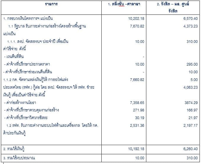 2.โครงการระบบรถไฟชานเมืองสายสีแดงเข้ม ช่วงรังสิต – มหาวิทยาลัยธรรมศาสตร์ (มธ.)ศูนย์รังสิต