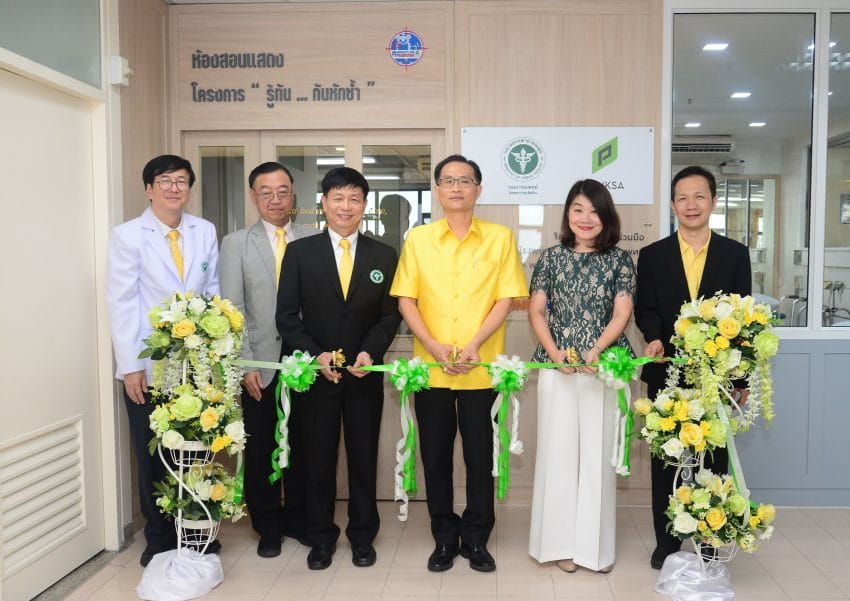 นางสาวอังคณา ลิขิตจรรยากุล ผู้ช่วยกรรมการผู้จัดการ สายงานการตลาดองค์กร บริษัท พฤกษา เรียลเอสเตท จำกัด (มหาชน) และนายแพทย์ สมศักดิ์ อรรฆศิลป์ อธิบดีกรมการแพทย์ กระทรวงสาธารณสุข พร้อมคณะผู้บริหาร ร่วมทำพิธีเปิดห้องสอนแสดง “ โครงการรู้ทัน…กันหักซ้ำ” ที่โรงพยาบาลเลิดสิน ซึ่งเป็นห้องตัวอย่างสำหรับผู้สูงอายุ หรือผู้ป่วยกระดูกสะโพกหัก โดยมีการติดตั้งอุปกรณ์ต่างๆ และมีนวัตกรรมที่ทันสมัย เพื่อช่วยอำนวยความสะดวกให้กับผู้สูงอายุ รวมถึงมีการให้ความรู้ในการเตรียมพื้นที่สำหรับผู้สูงอายุหลังรับการฟื้นฟูจากโรงพยาบาลเมื่อกลับไปใช้ชีวิตประจำวันปกติที่บ้าน