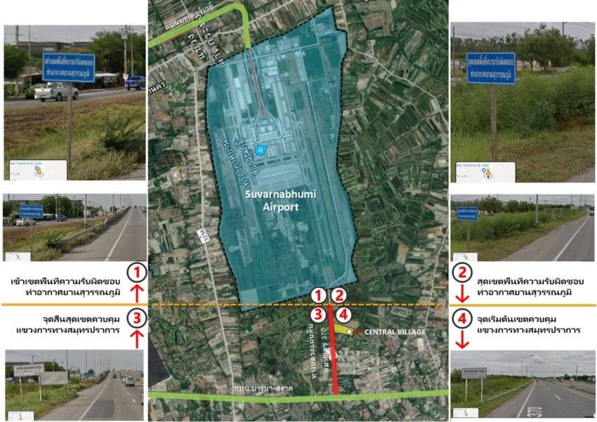 อย่างไรก็ตามก่อนหน้านี้นายนิตินัย ศิริสมรรถการ กรรมการผู้อำนวย การใหญ่ บริษัท ท่าอากาศยานไทย จำกัด (มหาชน) หรือ ทอท. ได้ออกมากล่าวว่า เมื่อวันที่ 23 ส.ค.2562 ที่ผ่านมา ได้นำเอาแนวกั้นถนนมากั้นขวางถนนทางเข้าออกของโครงการเซ็นทรัล วิลเลจ เอาต์เลต ของกลุ่มจิราธิวัฒน์ เนื่องจากโครงการดังกล่าวก่อสร้างบนที่ดินตาบอดติดกับสนามบิน และมีการรุกล้ำที่ราชพัสดุที่มีราชกิจจานุเบกษามอบให้ ทอท.เพื่อประโยชน์ในการดำเนินกิจการสนามบินสุวรรณภูมิ มีผลทำให้พนักงานของสำนักงานการประปาสาขาสุวรรณภูมิ ไม่สามารถเข้าไปวางท่อประปาในพื้นที่ของโครงการนี้ได้นอกจากนี้ยังมีพื้นที่อีกจำนวนหนึ่งของโครงการรุกล้ำเข้ามาในพื้นที่ของสนามบินด้วย โดย ทอท.ได้ขอให้โครงการรื้อถอนสิ่งก่อสร้างที่รุกล้ำพื้นที่เข้ามาแล้ว แต่เจ้าของโครงการเพิกเฉยมิได้ดำเนินการใดๆ แม้ ทอท.จะได้มีการไปแจ้งความไว้ยังสถานีตำรวจแล้วก็ตาม แต่คำร้องดังกล่าวไม่เคยมีการดำเนินการ ทอท.จึงจำเป็นต้องใช้วิธีปิดถนนห้ามสำนักงานการประปา สาขาสุวรรณภูมิเข้าไปยังพื้นที่ดังกล่าว