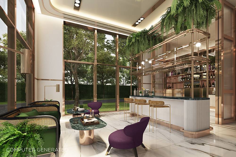 Co Working Space ที่ลูกบ้านสามารถใช้นั่งทำงานในมุมสงบส่วนตัว หรือนั่งอ่านหนังสือเล่มโปรดพร้อมกับชมวิวสวนสวยหน้า lobby