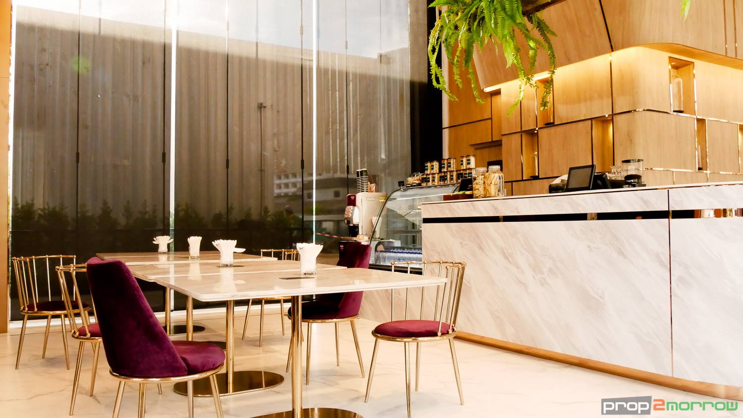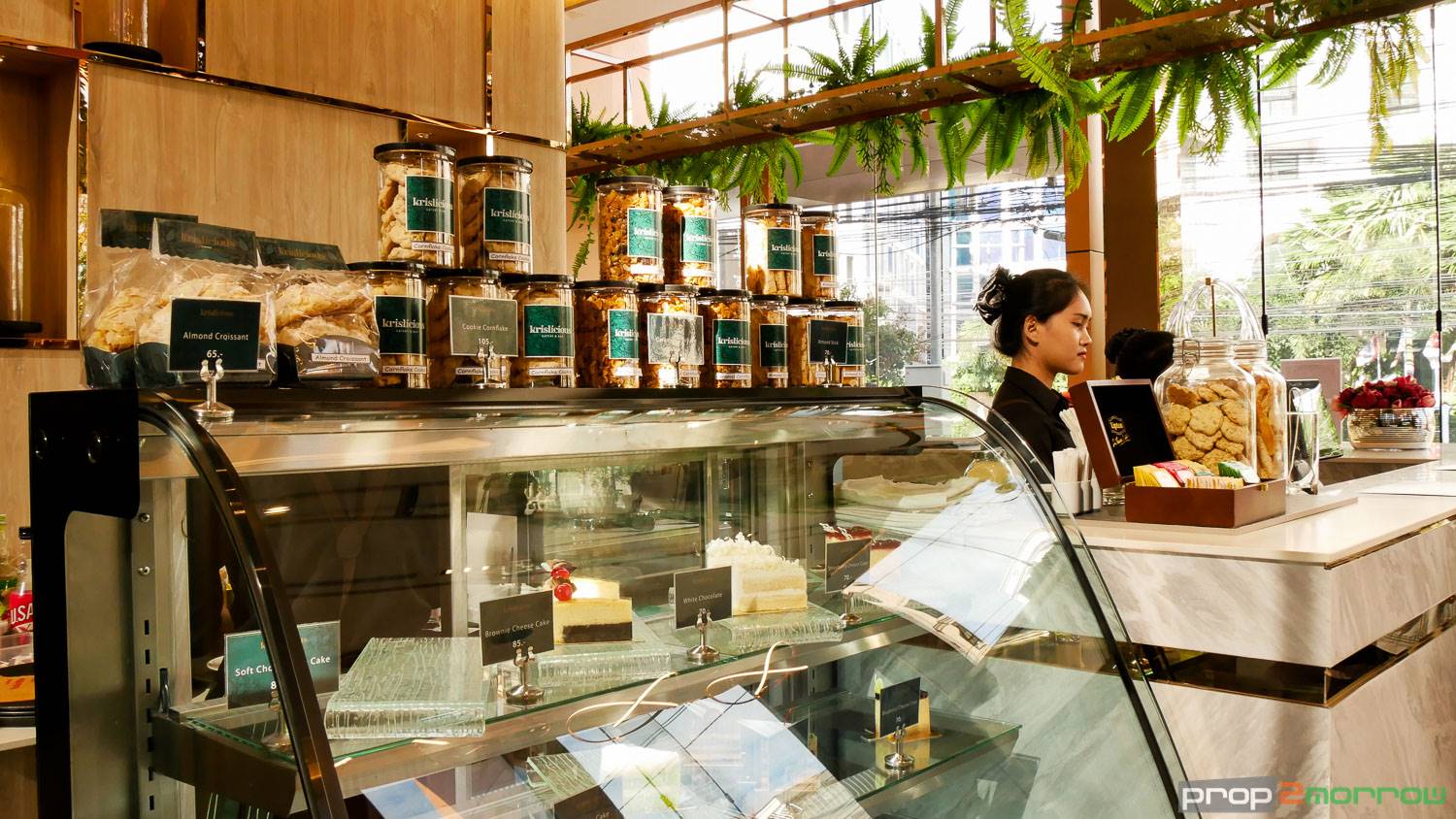 เดินทางมาเหนื่อยๆ ร้อนๆ ก่อนเดินชมห้องตัวอย่างแวะจิบเครื่องดื่มเย็นๆ และเค้กอร่อยๆ จาก Krislicious Cafe และสิทธิพิเศษสำหรับคนที่จอง สามารถมาใช้บริการ Café ได้ฟรี แต่สำหรับคนทั่วไปก็สามารถเข้ามาใช้บริการได้ นั่งจิบกาแฟ ในห้องแอร์เย็นๆ อย่างที่บอกว่าที่นี่ใช้กระจก 2 ชั้น สามารถกันความร้อนจากภายนอกได้ทำให้เย็นสบายมากยิ่งขึ้น