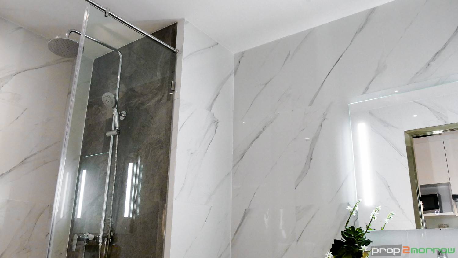 ห้องน้ำก็ได้แบบเดียวกับ Studio คือแบบ Rain Shower และแบ่งพื้นที่แห้ง และพื้นที่เปียกไว้ให้เป็นสัดส่วน