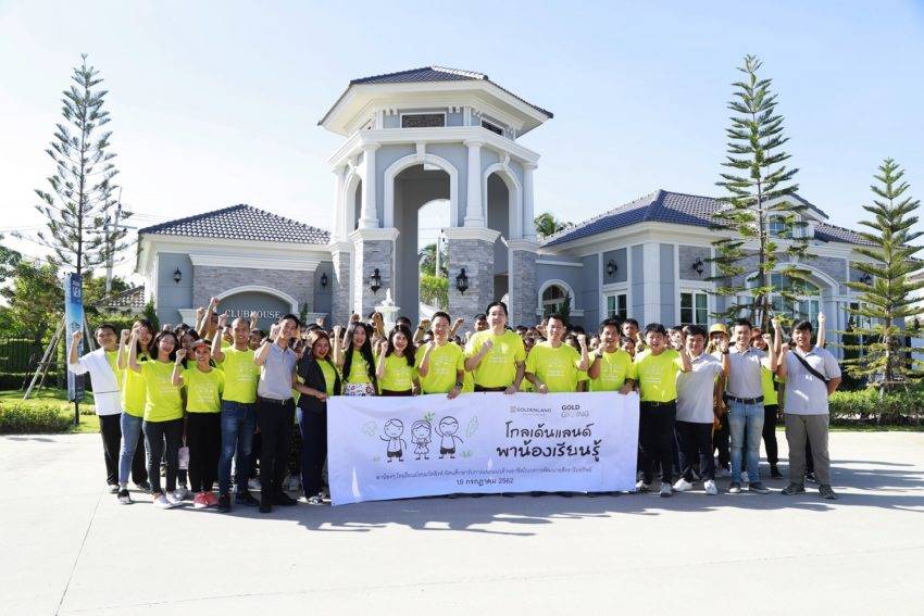 นายภวรัญชน์ อุดมศิริ (แถวหน้ากลาง)กรรมการผู้จัดการ สายงานพัฒนาโครงการทาวน์โฮมและบ้านแฝด บริษัท แผ่นดินทอง พร็อพเพอร์ตี้ ดีเวลลอปเม้นท์ จำกัด (มหาชน) หรือ โกลเด้นแลนด์ หรือ GOLD ให้การต้อนรับ คณะครูและนักเรียนจากโรงเรียนมัธยมวัดสิงห์ ระดับชั้นมัธยมศึกษาปีที่ 4- 5 จำนวนกว่า 70 คน และร่วมฟังการถ่ายทอดประสบการณ์ตรงจากการทำงานในบริษัทด้านอสังหาริมทรัพย์จากพี่พนักงานโกลเด้นแลนด์ในหลากหลายสายเพื่อต่อยอดความรู้จุดประกายความคิดในการเลือกสายวิชาในระดับมหาวิทยาลัย พร้อมทั้งเข้าเยี่ยมชมนวัตกรรมการก่อสร้างบ้านของโครงการ โกลเด้น นีโอ สาทร หลังจากนั้นทางบริษัทฯ ก็ได้พาน้องๆ ไปเรียนรู้วิถีเกษตรอินทรีย์ ซึ่งถือเป็นกิจกรรมที่เด็กรุ่นใหม่ๆ อาจจะยังไม่เคยได้ทำมาก่อน อาทิเช่น ดำนา ทำสมุนไพรไล่ยุง ทำขนมกล้วย ณ สวนสามพราน จังหวัดนครปฐม และโครงการโกลเด้น นีโอ สาทร เมื่อเร็วๆนี้