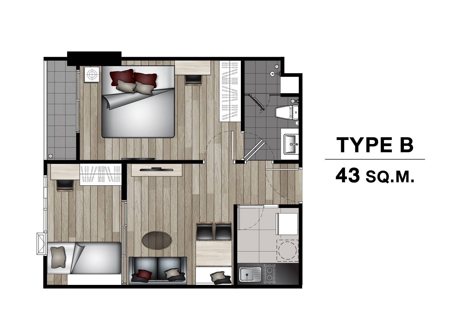 2 BEDROOM 43 SQ.M.