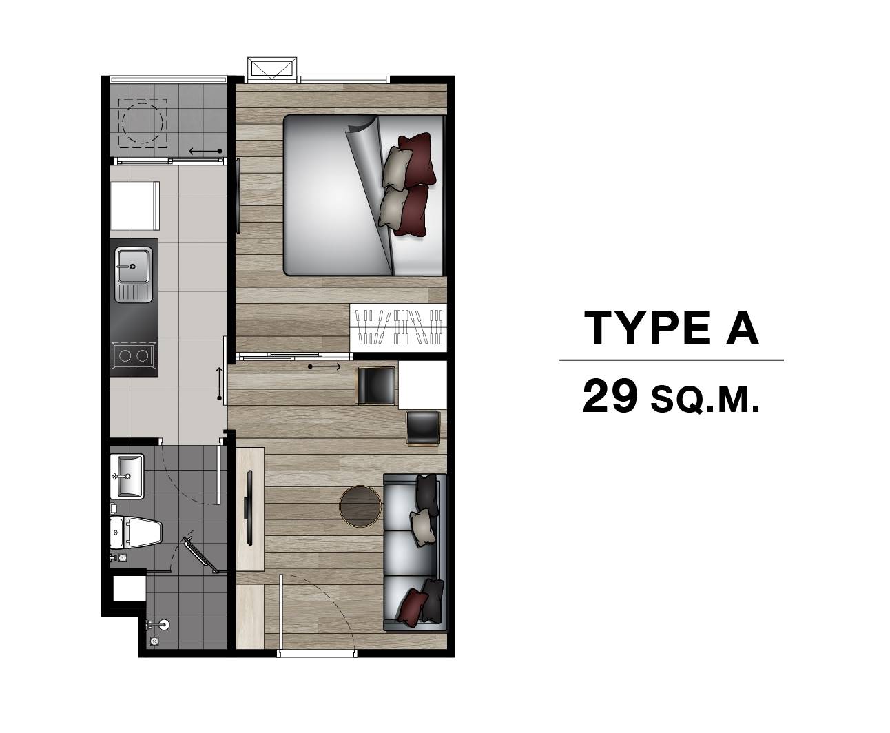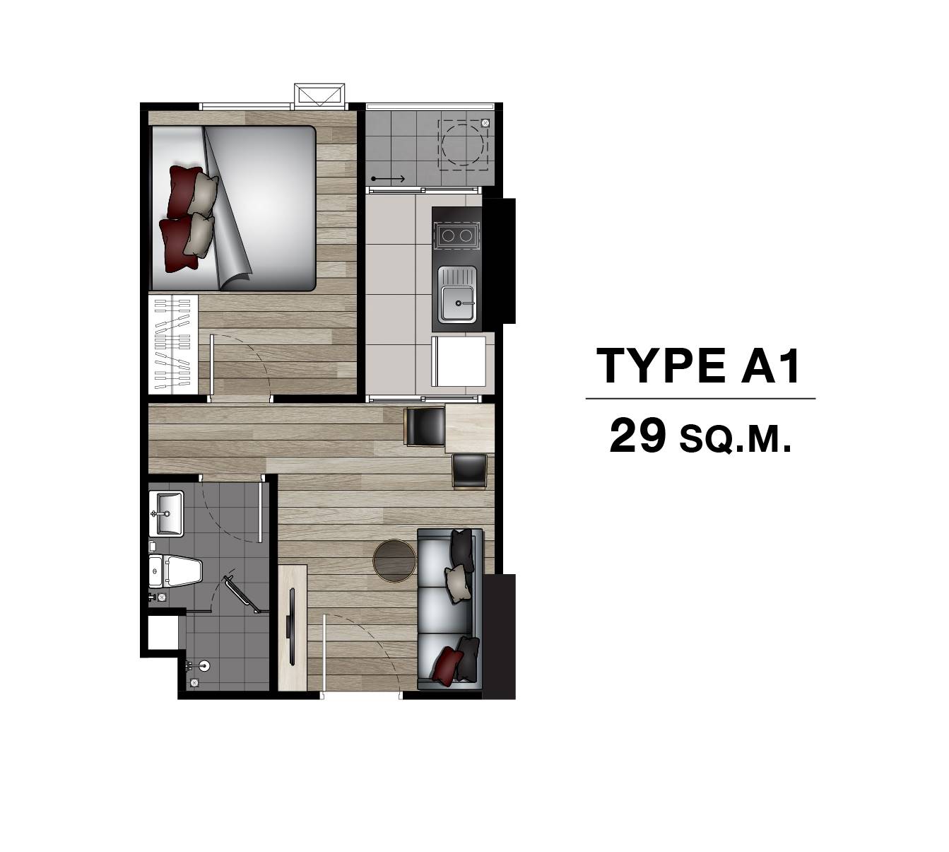 1 BEDROOM 29 SQ.M.