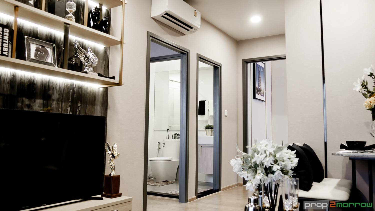 ฝั่งตรงข้ามทางโครงการบิ้วอินชั้นวางทีวีไว้ให้