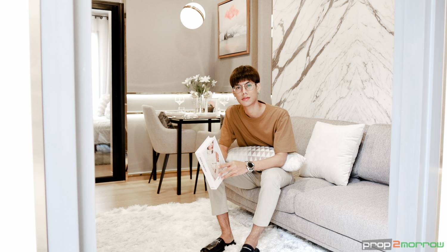 ส่วน Living Area เป็นพื้นที่ส่วนกลางสำหรับทุกคนได้มาแชร์กัน ระยะจากโซฟาถึงทีวีค่อนข้างกว้าง ด้านข้างสามารถจัดเป็นมุมสำหรับรับประทานอาหารได้ถึง 4 ที่ ยังเหลือพื้นที่ โล่ง ห้องดูกว้าง ไม่อึดอัด