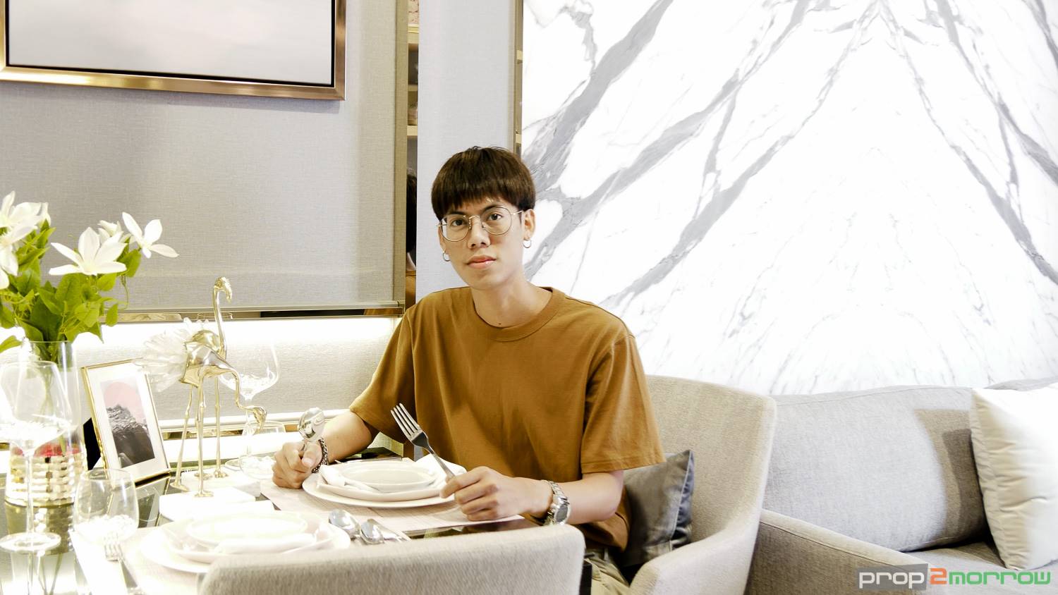 วางโซฟา แล้วยังเหลือพื้นที่วางโต๊ะรับประทานอาหารสำหรับ 2 ที่