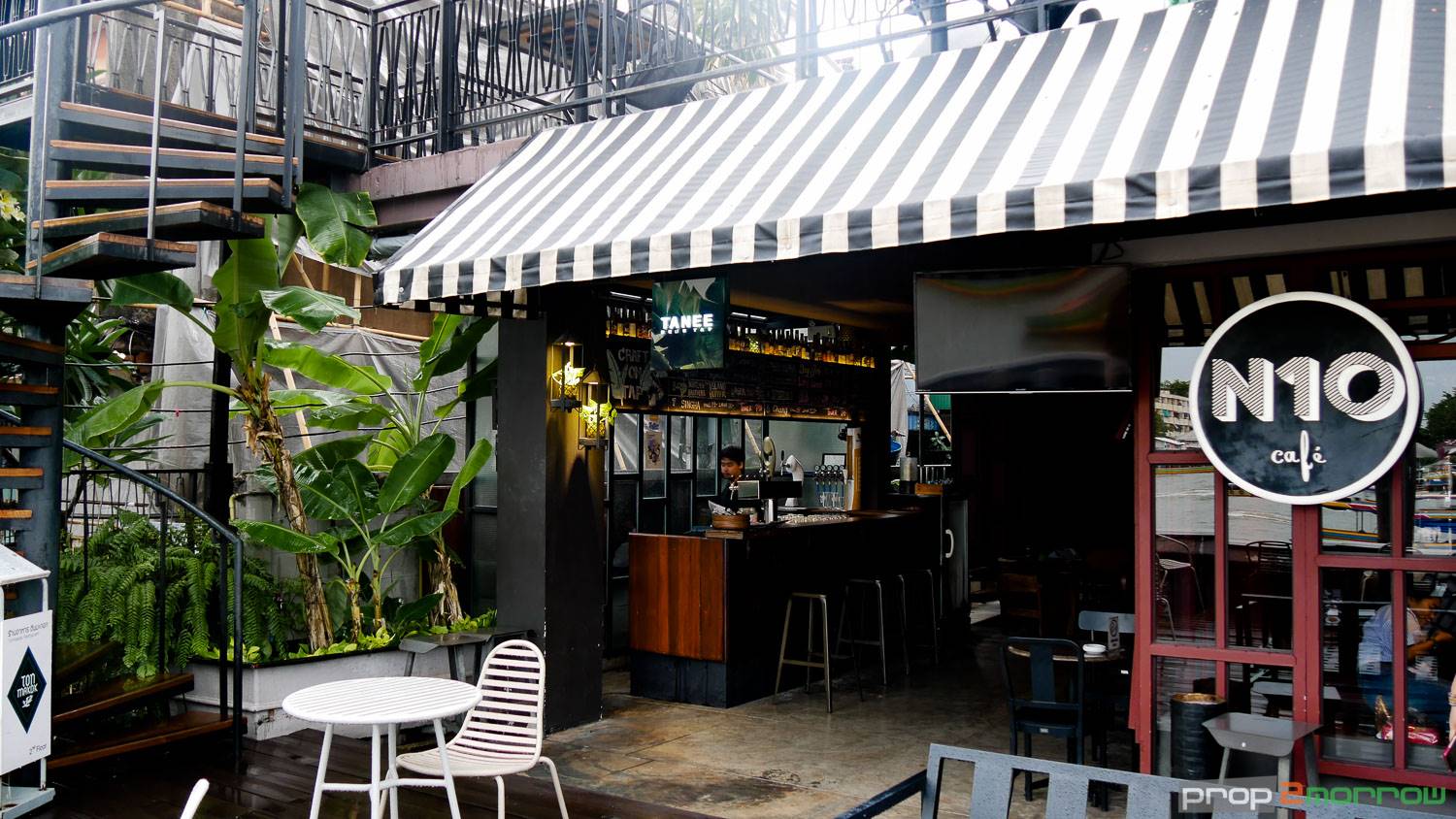 จากท่าวังหลังเดินผ่านตลาดวังหลัง ตลาดที่มีร้านค้า ของกิน เสื้อผ้า ของกระจุกกระจิกมากมาย เดินเข้ามาทางซอยวัดระฆัง มีคาเฟ่ น่ารักๆ ริมน้ำอยู่หลายร้าน วันนี้เราเลือกนั่งร้าน N10 คาเฟ่เก๋ ที่ตั้งอยู่ริมน้ำเจ้าพระยาสามารถนั่งชิลๆ ชมวิว หรือนั่งเพลินๆ ดูเรือที่สัญจรไปมาในแม่น้ำเจ้าพระยาก็สบายตาไปอีกแบบ