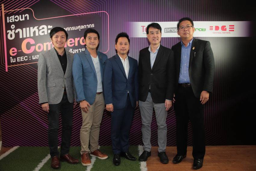 วันนี้ (18พ.ย. 2562) บริษัท พร็อพทูมอร์โรว์ จำกัด ผู้ประกอบธุรกิจ ที่ปรึกษาด้านการตลาดและสื่อด้านอสังหาริมทรัพย์ได้จัดงานเสวนา “ชำแหละประกาศกรมศุลกากร E-Commerce ใน EEC: ผลกระทบภาคอสังหาฯ ไทย” โดยวิทยากรประกอบด้วย นายทัศไนย เหมือนเสน ผู้ก่อตั้งเว็บไซต์ JOBBKK.COM หรือ E_JOB กรรมการบริษัท THAILAND BUSINESS CENTER (TeC) และอุปนายกสมาคมดิจิทัลไทย, ดร. เฉลิมรัฐ นาควิเชียร ประธานบริหาร GMO – Z.com NetDesign, นายปฐม อินทโรดม ประธานเจ้าหน้าที่บริหาร บริษัทสยามไอซีโอ จำกัด และกรรมการสภาดิจิทัลเพื่อเศรษฐกิจและสังคมแห่งประเทศไทย และนายกรณ์กวินท์ พีระเดชไพศาล ประธานเจ้าหน้าที่บริหารฝ่ายการตลาดบริษัท พร็อพทูมอร์โรว์ จำกัด โดยสรุปวิทยากรต่างสรุปเห็นพ้องกันว่าพื้นที่ E-Commerce Park จะส่งผลดีต่อธุรกิจอสังหาฯ และธุรกิจที่เกี่ยวเนื่อง อาทิ โกดังสินค้า บ้าน คอนโดให้เช่า โรงแรม เซอร์วิสอพาร์ตเม้นท์ ศูนย์ประชุม รวมถึงธุรกิจภาคบริการอื่นๆ เช่น ธุรกิจเฮลท์แคร์ โรงพยาบาล ธุรกิจประกัน ธุรกิจโลจิสติกส์ ธุรกิจไอที และธุรกิจรีเทล เป็นต้น