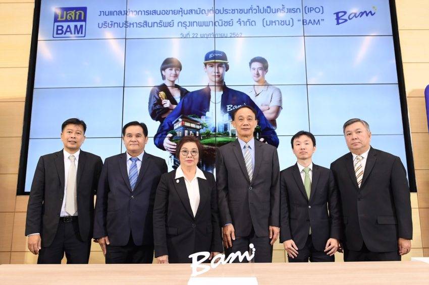 BAM เดินหน้าเสนอขายหุ้น IPO ผ่าน 3 แบงก์ใหญ่ ระหว่างวันที่ 25-29 พ.ย.62 ระบุประชาชนแต่ละรายได้รับจัดสรรสูงสุดไม่เกิน 1 ล้านหุ้น คาดเข้าจดทะเบียนซื้อขายในตลาดฯกลางธ.ค.นี้ หวังนำเงินชำระหนี้ลดภาระดอกเบี้ย – ร่วมประมูลสินทรัพย์ด้อยคุณภาพ เพิ่มขีดความสามารถในการแข่งขัน ช่วยทำให้ราคาซื้อขายดีขึ้น ลดภาระลูกหนี้ในการผ่อนชำระต่อ