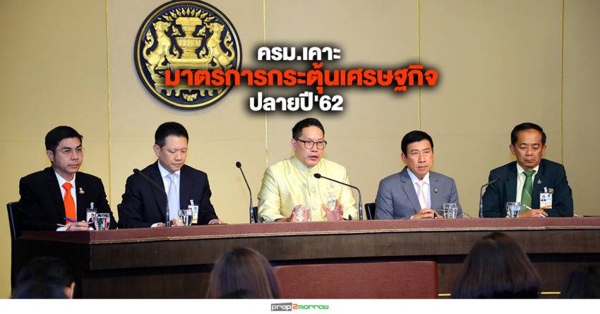 นายอุตตม สาวนายน รัฐมนตรีว่าการกระทรวงการคลัง เปิดเผยว่า เพื่อให้ระบบเศรษฐกิจในปี 2562 มีการเจริญเติบโตและขยายผลอย่างต่อเนื่อง โดยเฉพาะอย่างยิ่งต่อประชาชน เกษตรกรรายย่อย ผู้ประกอบการ SMEs รวมถึงภาคอสังหาริมทรัพย์ คณะรัฐมนตรีจึงมีมติเมื่อวันที่ 26 พฤศจิกายน 2562 เห็นชอบมาตรการกระตุ้นเศรษฐกิจในช่วงปลายปี 2562 ตามที่กระทรวงการคลังเสนอ โดยมีรายละเอียดดังนี้