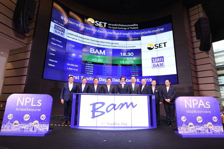 บริษัทบริหารสินทรัพย์ กรุงเทพพาณิชย์ จำกัด (มหาชน) หรือ BAM ผู้นำในธุรกิจบริหารสินทรัพย์ที่มีขนาดใหญ่ที่สุดของประเทศไทย มีประสบการณ์ยาวนานกว่า 20 ปี มีแหล่งเงินทุนที่หลากหลาย และมีการจ่ายเงินปันผลอย่างต่อเนื่องสำหรับผลประกอบการในช่วง 3 ปีที่ผ่านมา เข้าจดทะเบียนในตลาดหลักทรัพย์แห่งประเทศไทย พร้อมเปิดการซื้อขายวันแรก 16 ธันวาคม 2562 โดยการเสนอขายหุ้น IPO ของ BAM เมื่อรวม Overallotment Option หรือ Green Shoe มีมูลค่า 30,888 ล้านบาท นับเป็นการเสนอขายหุ้น IPO ของบริษัทในกลุ่มสถาบันการเงินที่ใหญ่ที่สุดในประเทศไทย และ South East Asia และใช้ชื่อย่อในการซื้อขายหลักทรัพย์ว่า “BAM”