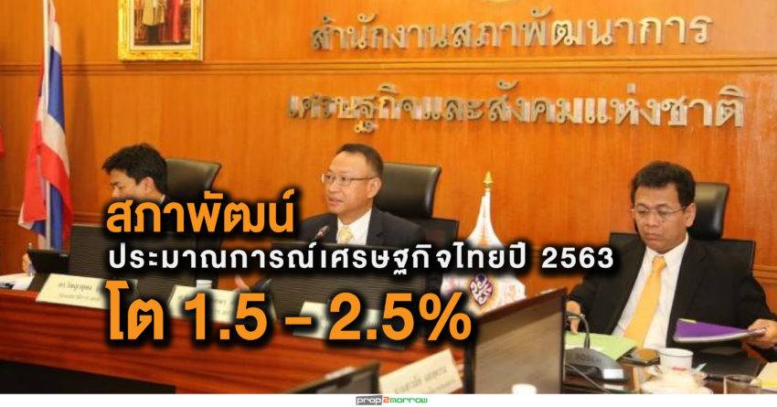 เศรษฐกิจไทยปี 2563 คาดว่าจะขยายตัวร้อยละ 1.5 – 2.5 ชะลอตัวลงจากปี 2562 ตามข้อจำกัดที่เกิดจากการระบาดของไวรัสโควิด-19 ปัญหาภัยแล้ง และความล่าช้าของงบประมาณรายจ่ายรัฐบาล แต่ยังมีปัจจัยสนับสนุนจาก