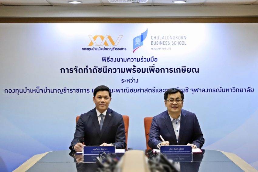 ด้าน รศ. ดร. วิเลิศ ภูริวัชร คณบดีคณะพาณิชยศาสตร์และการบัญชี จุฬาลงกรณ์มหาวิทยาลัย กล่าวถึงความร่วมมือในครั้งนี้ว่า เป็นโอกาสอันดีอย่างยิ่งที่คณะพาณิชยศาสตร์และการบัญชี จุฬาลงกรณ์มหาวิทยาลัย ได้ร่วมมือกับสถาบันหลักอย่าง กบข. ในการเตรียมความพร้อมให้กับประชาชนคนไทยในการก้าวเข้าสู่สังคมผู้สูงอายุ อันจะเป็นประโยชน์อย่างยิ่งให้กับสังคมโดยรวมของประเทศ ซึ่งเป็นพันธกิจที่สำคัญอันหนึ่งของคณะฯ และมหาวิทยาลัยที่ต้องการเป็นสถาบันการศึกษาที่เป็นเสาหลักในการพัฒนาประเทศ และสร้างประโยขน์ให้กับสังคมไทยโดยรวม