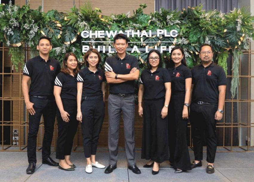 นายบุญ ชุน เกียรติ กรรมการผู้จัดการ บริษัท ชีวาทัย จำกัด (มหาชน) หรือ CHEWA (ที่4จากซ้าย) พร้อมด้วยผู้บริหาร และพนักงาน จัดงานแถลงแผนการดำเนินธุรกิจ ปี 2563 ประกาศเปิดตัวใหม่อีก 4 โครงการ มูลค่า 3,602 ล้านบาท แบ่งเป็น โครงการแนวราบ 3 โครงการ และแนวสูงอีก 1 โครงการ บริษัทฯวางเป้ารายได้ปี 2563 แตะ 2,000 ล้านบาท ณ ห้อง Turquoise ชั้น 8 โรงแรม เอทัส ลุมพินี เมื่อเร็วๆนี้