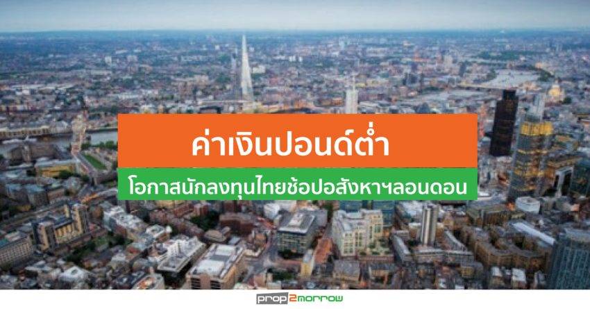 ซีบีอาร์อีฯพบนักลงทุนไทยให้ความสนใจอสังหาริมทรัพย์เพื่ออยู่อาศัย–ปล่อยเช่าในกรุงลอนดอนเพิ่มมากขึ้น ระบุงบ 1.2 ล้านปอนด์ หรือ 50 ล้านบาท นักลงทุนสามารถซื้อห้องพักอาศัยใจกลางเมืองได้ คาดภายใน 5 ปีราคาปรับตัวสูงขึ้นรวม 10.5% เหตุซัพพลายน้อยกว่าดีมานด์ เผยค่าเงินปอนด์ก็ยังอยู่ในระดับที่ต่ำเป็นปีที่ห้าติดต่อกัน เป็นโอกาสคนไทยช้อปสินค้า