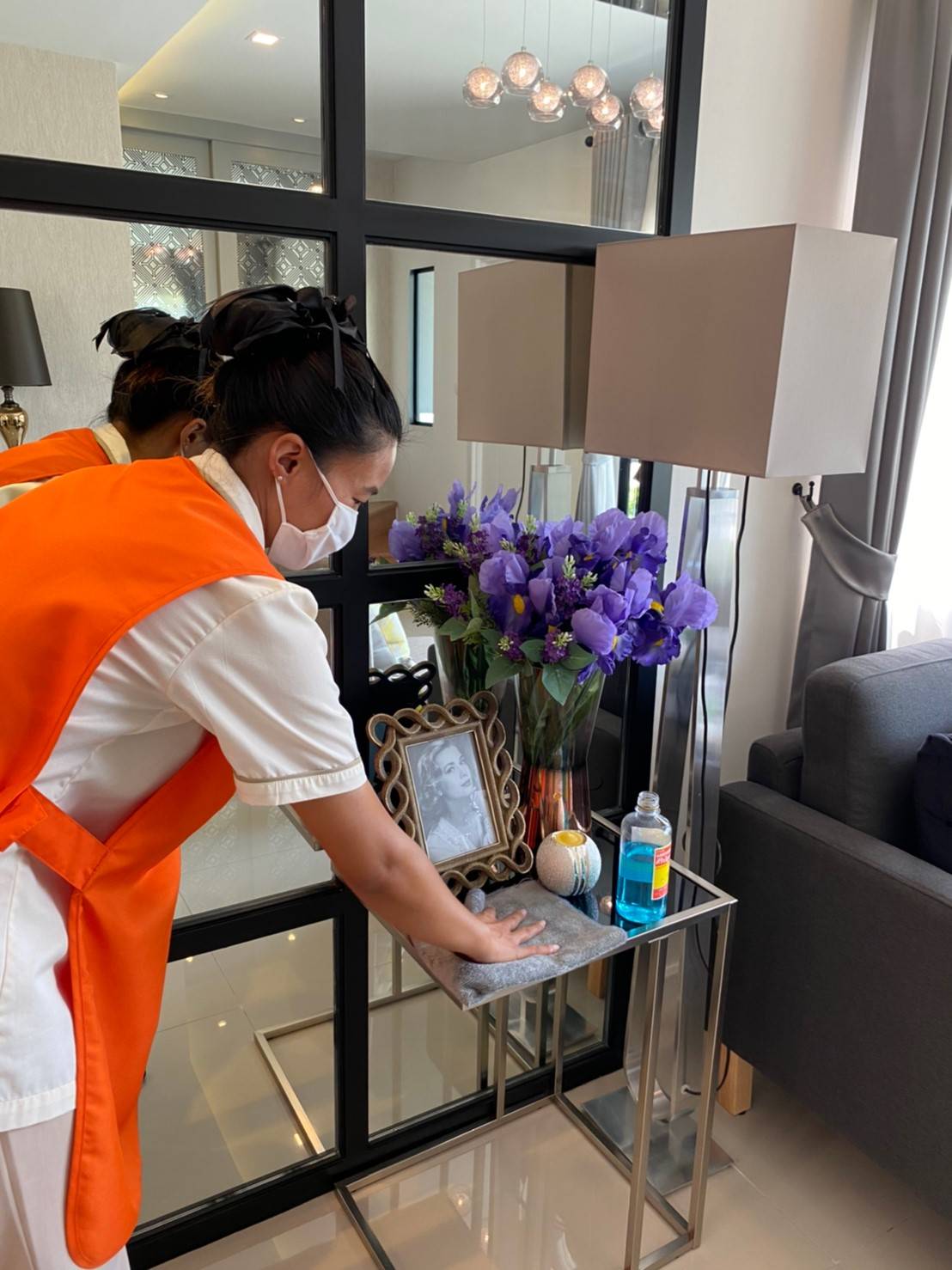 ด้านมาตรการป้องกันที่สำนักงานขายของโครงการ เพื่อสร้างความมั่นใจสำหรับลูกค้าที่เยี่ยมชมโครงการ ได้ออกนโยบายให้พนักงานขาย แม่บ้าน เจ้าหน้าที่รักษาความปลอดภัยสวมหน้ากากอนามัยตลอดเวลา  ทำความสะอาดพื้นที่บริเวณสำนักงานขาย บ้านตัวอย่าง ที่จับบานประตูเข้า-ออก โต๊ะ เก้าอี้ โซฟา พร้อมทั้งฉีดสเปรย์ฆ่าเชื้อ ทุกชั่วโมง  รวมทั้งจัดให้มีแอลกอฮอล์เจลเพื่อล้างมือประจำจุด จัดเตรียมหน้ากากอนามัยสำหรับลูกค้า และให้ทำความสะอาดบัตรเข้าออกเป็นประจำเพื่อป้องกันการแพร่เชื้อที่อาจเกิดขึ้นได้