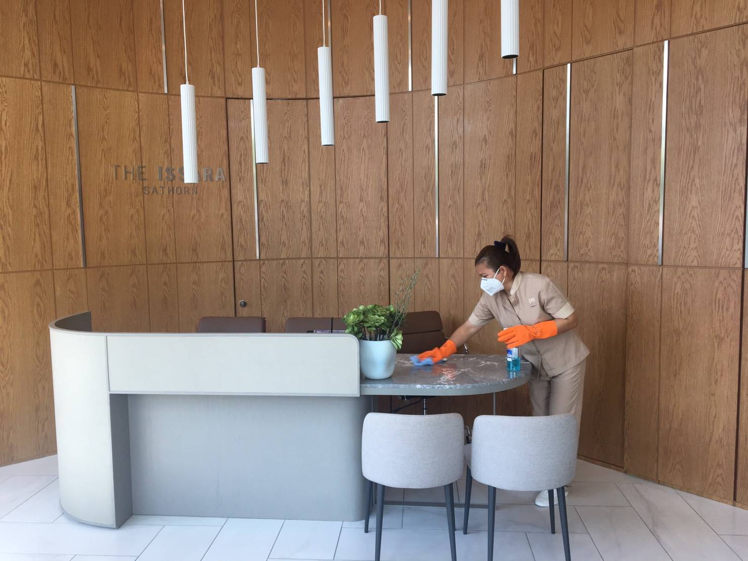 โดยให้มีการทำความสะอาดจุดสัมผัสต่างๆ อย่างเคร่งครัด เช่น ปุ่มกดเรียกลิฟท์, ปุ่มกดบอกชั้นในลิฟท์, เคาน์เตอร์ประชาสัมพันธ์, โต๊ะ เก้าอี้รับแขกภายใน Lobby เป็นต้น ทำการฉีดพ่นฆ่าเชื้อบริเวณพื้นที่ส่วนกลางที่เสี่ยงต่อการแพร่กระจายของเชื้อโรค มีการตรวจวัดอุณหภูมิร่างกายทุกคนก่อนเข้าภายในโครงการ วางเจลแอลกอฮอล์ล้างมือบริเวณพื้นที่ส่วนกลางเพื่อให้บริการกับลูกค้า และ/หรือผู้มาติดต่อภายในโครงการ มีการฉีดพ่น ทำความสะอาดพัสดุ-สิ่งของทั้งหมดที่เข้ามาส่งภายในโครงการ ปิดให้บริการสระว่ายน้ำ ห้องสตีม ห้องออกกำลังกาย เป็นการชั่วคราว พร้อมทั้งกำชับให้ทุกคนดูแลป้องกัน และรักษาสุขภาพของตัวเองด้วยการสวมหน้ากากอนามัย ถุงมือในกรณีพนักงานทำความสะอาด ทุกครั้งระหว่างปฏิบัติหน้าที่ เป็นต้น ทั้งนี้การดำเนินการมาตรการทั้งหมดได้คำนึงถึงสุขภาพอนามัย และความปลอดภัยของลูกค้า พนักงาน และผู้มาติดต่อ เป็นสำคัญ