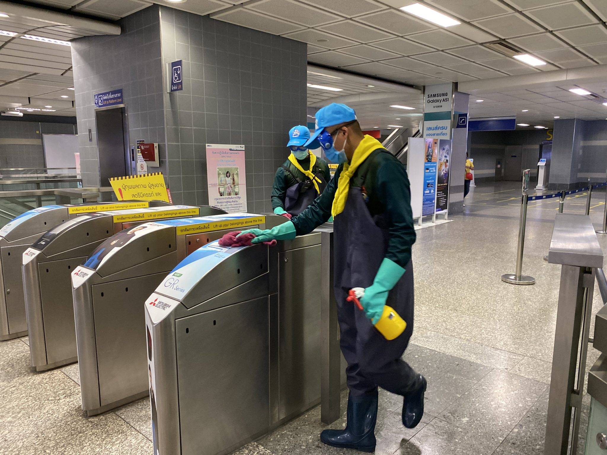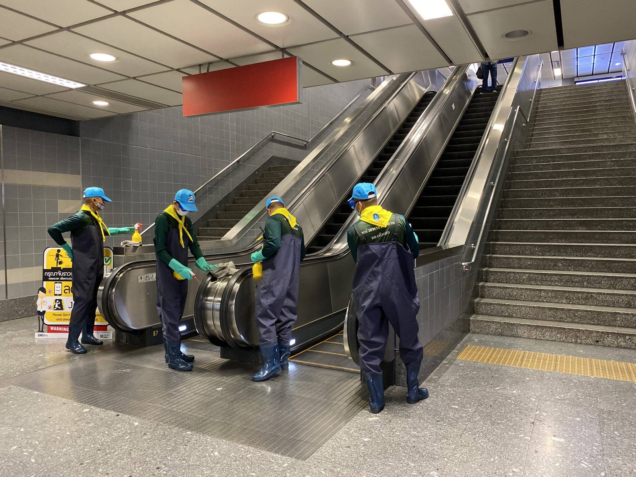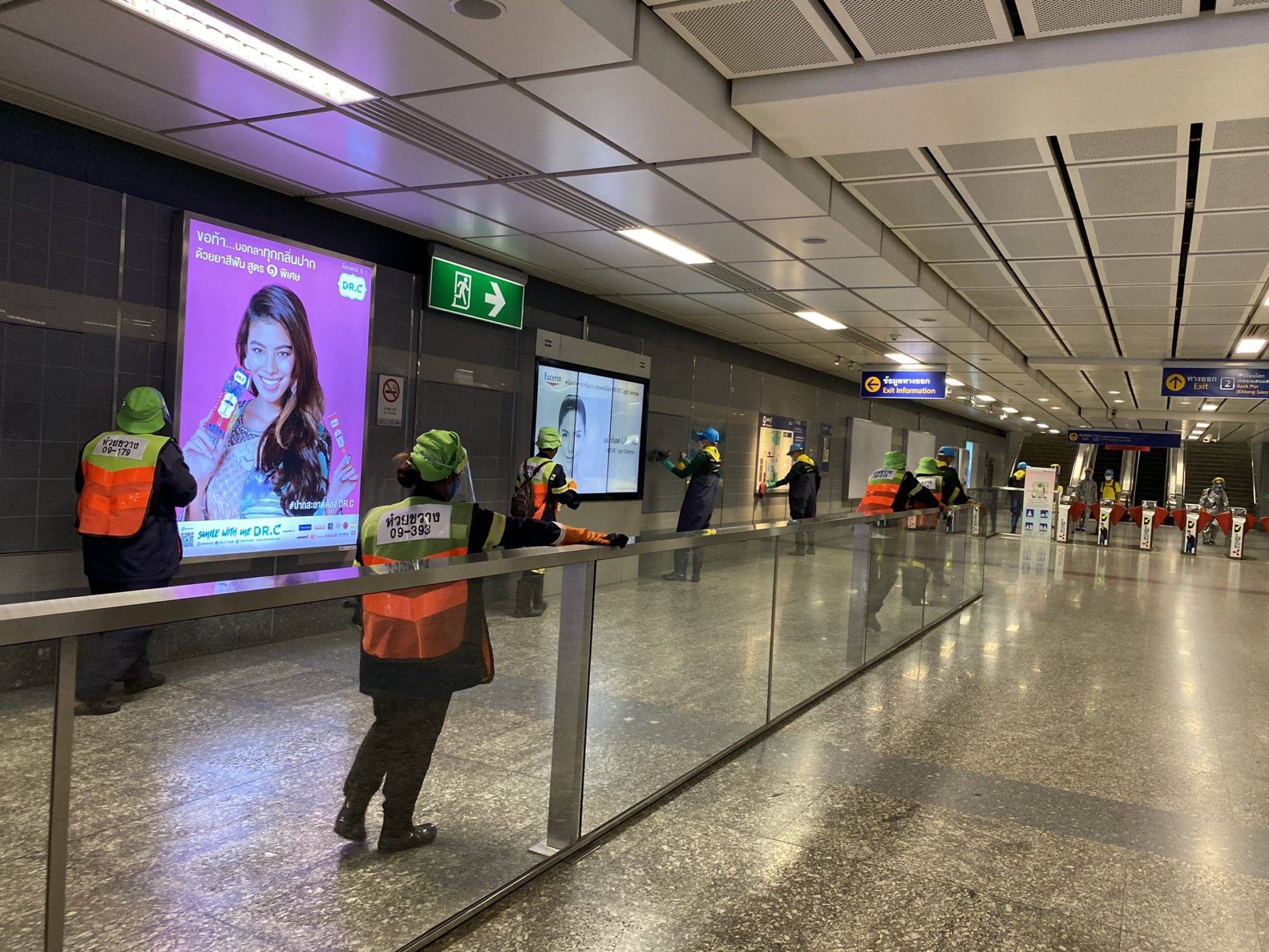 ตามนโยบายของกระทรวงคมนาคมและกรมการขนส่งทางราง ในการบูรณาการความร่วมมือกับทุกภาคส่วน เพื่อระงับการแพร่ระบาดของเชื้อไวรัส COVID-19 การรถไฟฟ้าขนส่งมวลชนแห่งประเทศไทย (รฟม.) และบริษัท ทางด่วนและรถไฟฟ้า กรุงเทพ จำกัด (มหาชน) หรือ BEM ได้ร่วมกับหน่วยงานรัฐ นำโดย พ.ท.ชนินทร์ เอี่ยมวิบูลย์ กองพลที่ 1 รักษาพระองค์ สังกัดกองพันทหารสื่อสารที่ 1 นำทีม เจ้าหน้าที่ตำรวจสถานีตำรวจนครบาลมักกะสัน และสำนักงานเขตราชเทวี ระดมกำลังฉีดพ่นน้ำยาฆ่าเชื้อในสถานีรถไฟฟ้า MRT สถานีเพชรบุรี เพื่อสร้างความมั่นใจเรื่องความปลอดภัยให้กับผู้โดยสารที่มาใช้บริการ