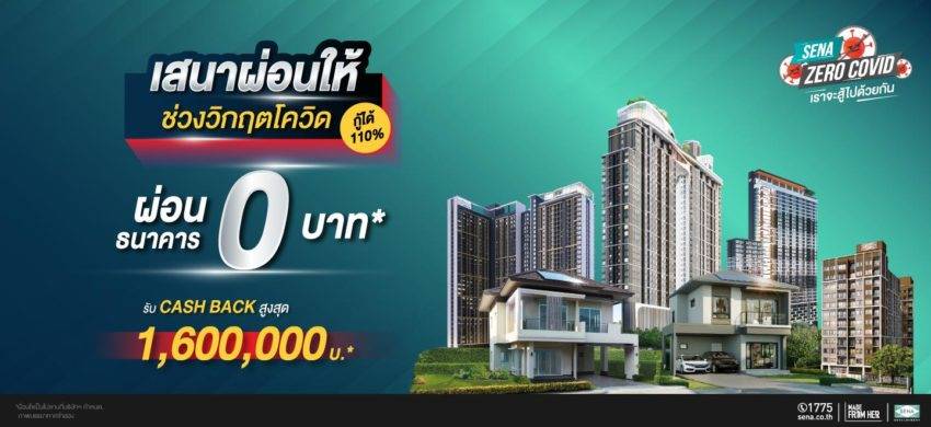 เสนาฯลุยช่วยเหลือลูกค้า ส่งแคมเปญ “SENA ZERO COVID” “ผ่อน 0 บาท นาน 6 เดือน” พร้อมรับ Cash back สูงสุด 1,600,000 บาท หวังเยียวยาลูกค้าใหม่ที่ต้องการที่อยู่อาศัย ทุกดีลพร้อมดูแล เริ่มตั้งแต่วันนี้-30 กันยายน 63