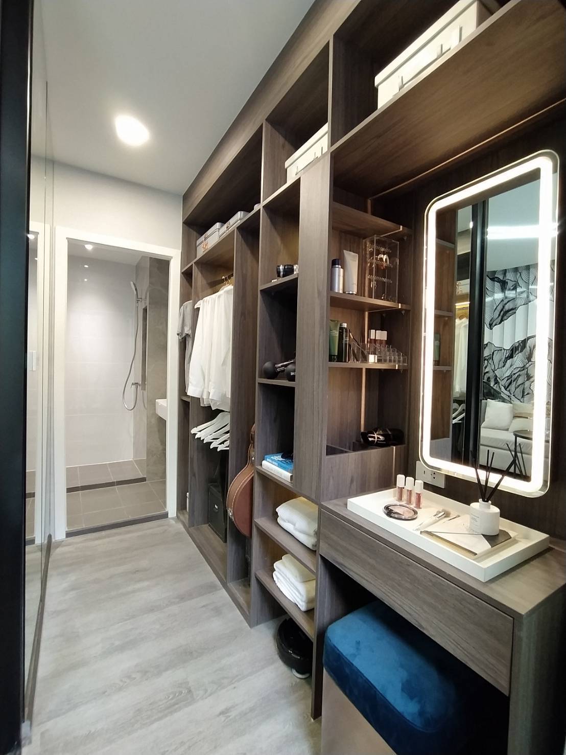 สำหรับ Type นี้เป็นขนาดเริ่มต้นของโครงการ ที่มีจุดเด่น คือ เป็น Smart Closet พื้นที่ Walk in Closet สามารถวางตู้เสื้อผ้าขนาดใหญ่ได้ หมดปัญหาเรื่องพื้นที่เก็บของเลย สามารถเดินออกไปยังส่วนของระเบียงได้เลย และห้องนี้ยังได้ครัวปิด พร้อมพื้นที่จัดวางตู้รองเท้าอีกด้วย สำหรับ Living Area เป็นส่วนที่อยู่ติดกับห้องนอน สำหรับ Type นี้เหมาะสำหรับอยู่คนเดียว หรือ 2 คนได้ กลุ่ม GEN Z เพิ่งเริ่มต้นทำงาน ที่งานอยู่โซนอโศก-บางนา และโซนนิคมบางปู เพราะเดินทางสะดวก ใช้เวลาไม่นานในการเดินทาง และสำหรับสายลงทุน Type นี้เหมาะกับการปล่อยเช่ามาก ปล่อยเช่าประมาณ 6,500-7,000 บาทเลย