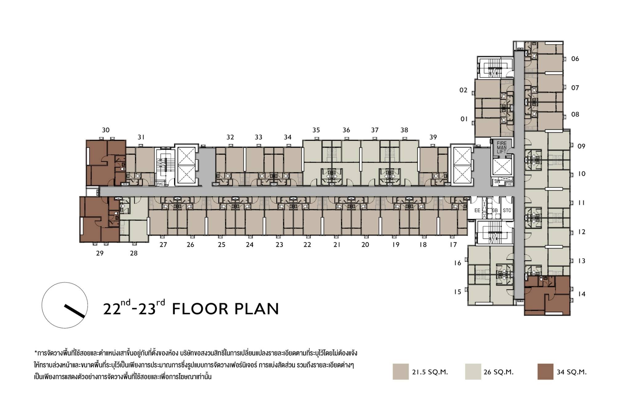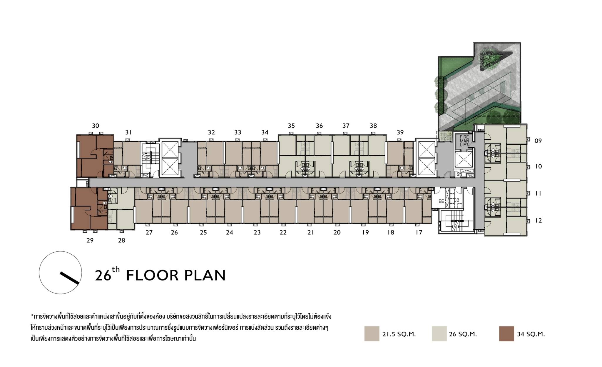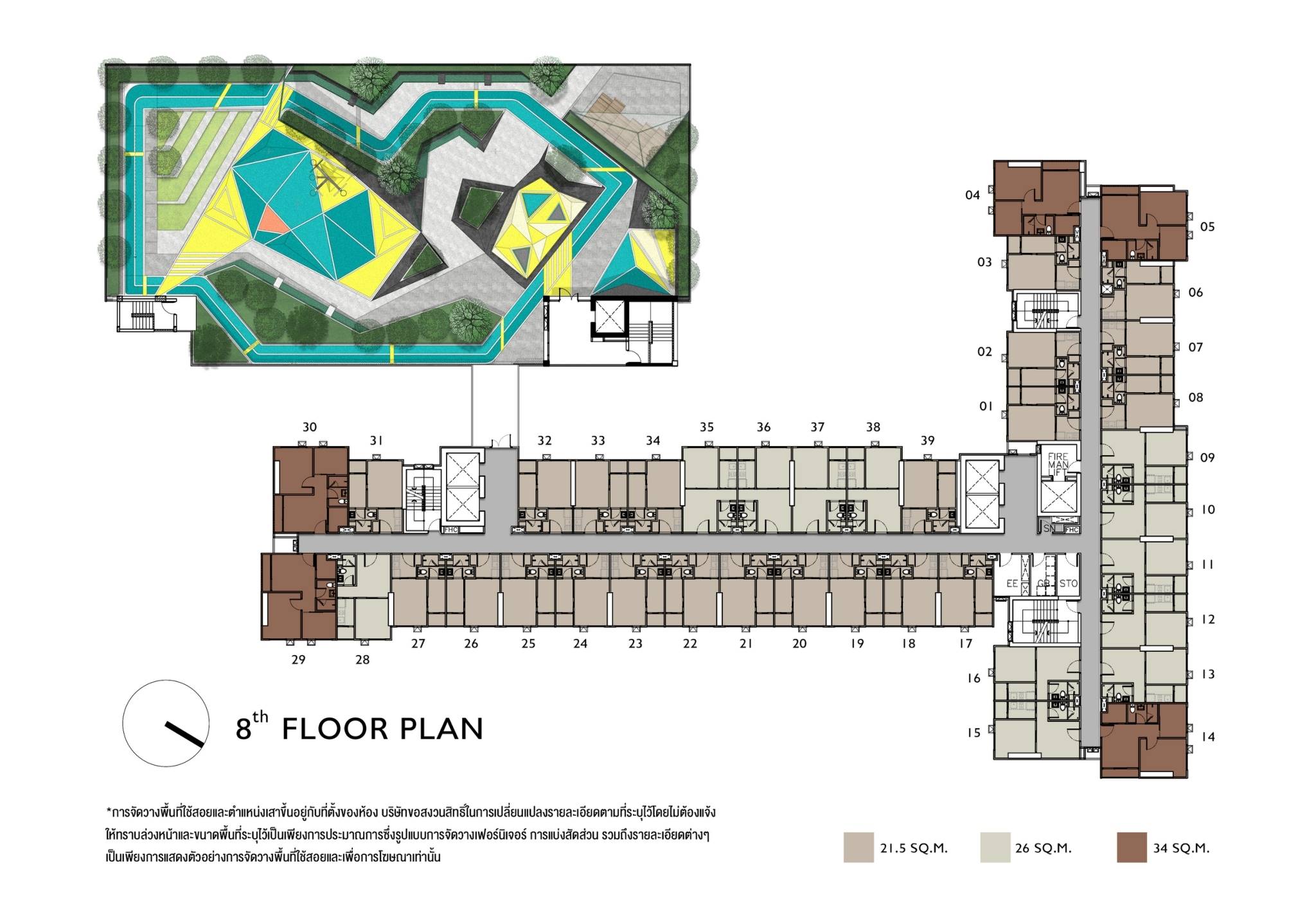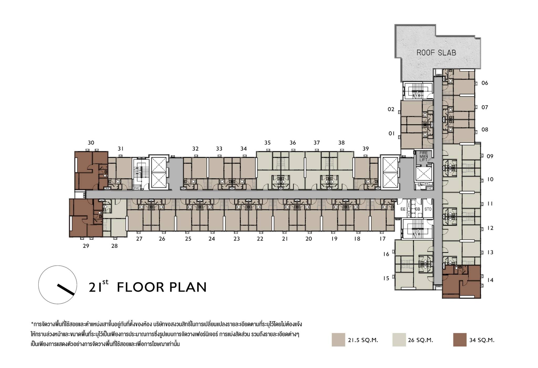 แบบห้องและขนาดห้อง 1 Bedroom : 21.50 sq.m.