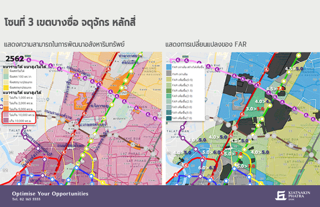 โซนนี้จะเป็นส่วนต่อขยายพื้นที่พาณิชยกรรมและแหล่งชุนชนจากใจกลางเมืองออกมาบริเวณถนนรัชดาภิเษกไปตามแนวถนนจนถึงสถานีร่วมบางซื่อ และสถานีจตุจักร ให้มีความหนาแน่นมากยิ่งขึ้นสามารถรองรับความเจริญที่จะขยายตัวออกมาตามแนวรถไฟฟ้าที่มีสถานีกลางเมกะโปรเจคขนาดใหญ่ และมีการขยายตัวของชุมชนการอยู่อาศัยไปตามแนวรถไฟฟ้าสายสีเขียวขึ้นไปทางเหนือจนถึงรามอินทรา-ดอนเมืองที่จะเห็นได้ว่ามีการเพิ่ม FAR ไปตลอดแนว ศักยภาพที่ดินจะดียิ่งขึ้นถ้าอยู่ในรัศมีจากสถานีรถไฟฟ้าตามข้อกำหนด ยิ่งอยู่ในบริเวณจุดที่เป็นสถานีร่วมจะพัฒนาในเชิงพาณิชย์ได้เพิ่มขึ้นอีกด้วย