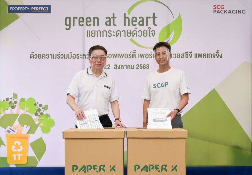 นายวงศกรณ์ ประสิทธิ์วิภาต กรรมการผู้จัดการ บริษัท พร็อพเพอร์ตี้ เพอร์เฟค จำกัด (มหาชน)หรือ PF (ซ้าย) และ นายกุลเชฏฐ์ ธาราจันทร์ ประธานเจ้าหน้าที่บริหารสายการเงิน บริษัท เอสซีจี แพคเกจจิ้ง จำกัด (มหาชน) หรือ SCGP (ขวา) ร่วมจัดโครงการ “Green at Heart แยกกระดาษด้วยหัวใจ” โดยเอสซีจี แพคเกจจิ้งฯ จะนำกระดาษเอกสารและบรรจุภัณฑ์ที่ใช้งานแล้วจากสำนักงานใหญ่และโครงการต่างๆของ พร็อพเพอร์ตี้ เพอร์เฟค ซึ่งผ่านการคัดแยกอย่างถูกต้องแล้วกลับเข้าสู่กระบวนการรีไซเคิล ตามหลักเศรษฐกิจหมุนเวียน (Circular Economy) เพื่อให้สามารถนำกลับมาใช้ใหม่ เกิดการใช้ทรัพยากรอย่างคุ้มค่าและยังเป็นการอนุรักษ์สิ่งแวดล้อม ซึ่งรายได้จากการดำเนินโครงการ พร็อพเพอร์ตี้ เพอร์เฟค จะมอบให้แก่วัดพระบาทน้ำพุ เพื่อทำประโยชน์แก่สังคมต่อไป ณ โครงการเพอร์คเฟค พาร์ค พระราม5-บางใหญ่ เมื่อเร็วๆนี้