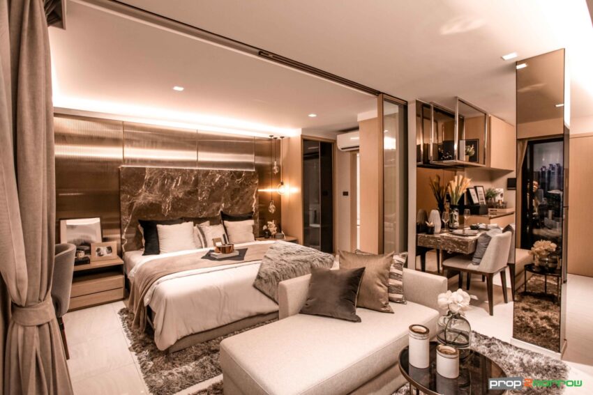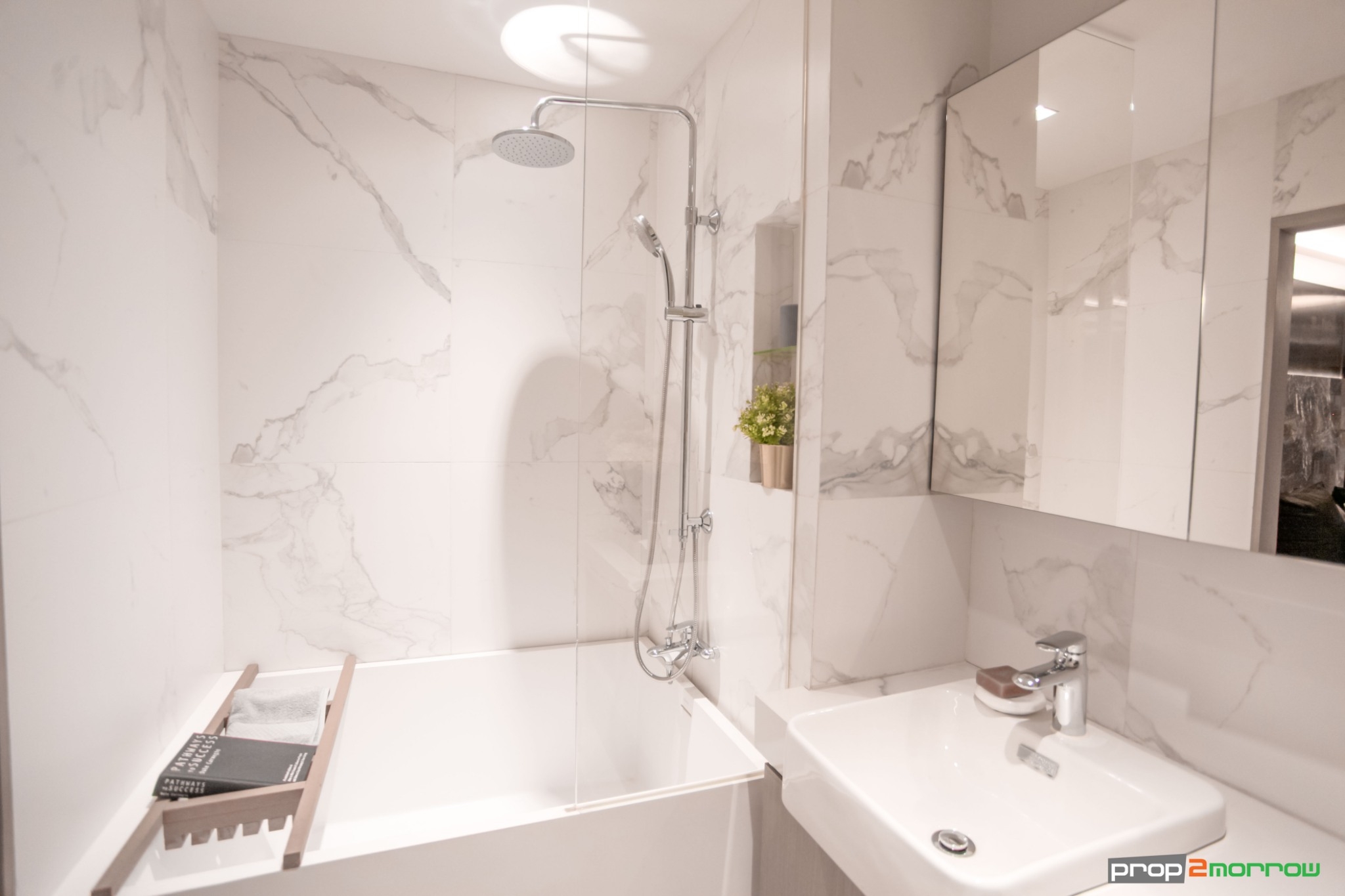 WALDEN ASOKE มีรูปแบบห้องให้เลือกถึง 7 รูปแบบ สำหรับห้องตัวอย่างที่พาชมวันนี้ เป็นแบบ 1 Bedroom ขนาด 31 Sq.m. ทางโครงการขายแบบ Fully Furnish วอลเปเปอร์ สีและแบบตามมาตราฐานโครงการ (บางส่วน), เคาน์เตอร์ครัว และซิงค์, เฟอร์นิเจอร์ (บางส่วน), ชุดสุขภัณฑ์, อ่างอาบน้ำ, ฝักบัว, ประตู Digital Door Lock (แบรนด์ Yale)