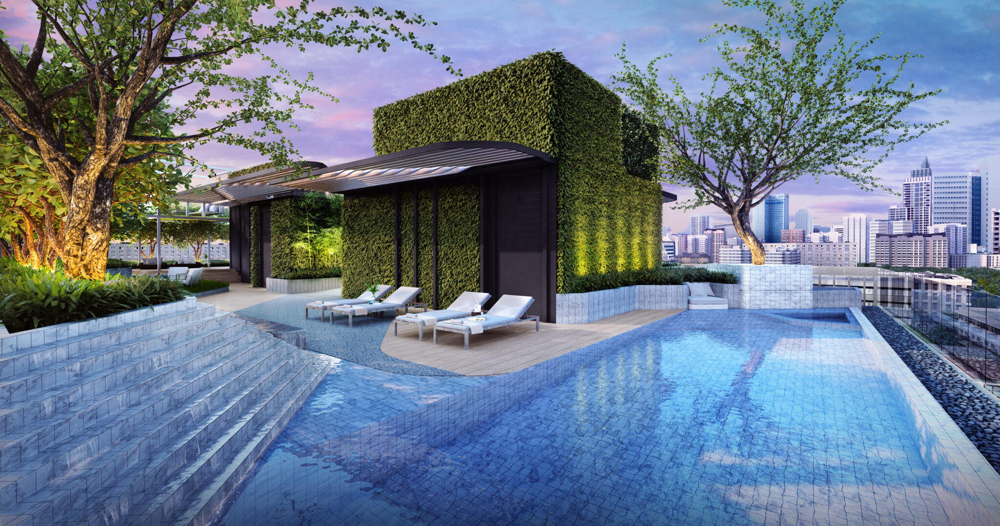 และชั้น Rooftop ทั้งชั้น โครงการออกแบบให้เป็นพื้นที่ส่วนกลาง สำหรับพักผ่อน มีสระว่ายน้ำ ที่มาพร้อมมุมพักผ่อน Sunken Jacuzzi Kid’s Pool, Hot&Cold Spa, Vichy Conner, Sky Pavilion, Sky Garden, Dinning Space&BBQ, Sun Deck, Kid’s Zone, Multi-Purpose Area, Play Ground, Sunken Party Space