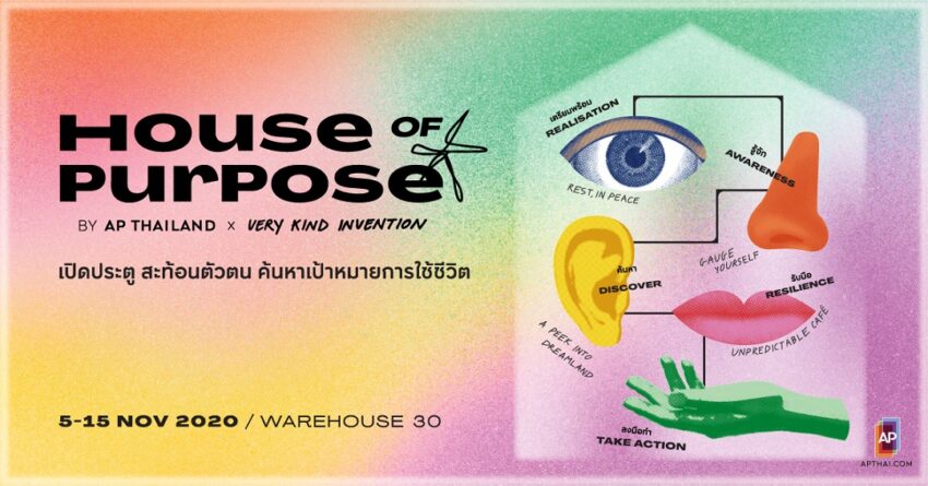 เอพี ไทยแลนด์ สานต่อพันธกิจ EMPOWER LIVING สร้าง “AP HOUSE OF PURPOSE” นิทรรศการเดียวที่จะปลุกแรงบันดาลใจครั้งใหม่ เสริมสร้างพลังใจให้กับคนไทยไม่หยุดที่จะค้นหาความหมายของชีวิตในวันพรุ่งนี้ สัมผัสประสบการณ์พิเศษกับเอ็กซิบิชั่นสเปซที่จะปลุกชีวิต พาคุณค้นหาความหมาย รู้จักและเข้าใจตัวเองในบริบทใหม่ผ่าน 5 ประสาทสัมผัส ณ Warehouse 30 คอมมูนิตี้สุดสร้างสรรค์ย่านเจริญกรุง ระหว่างวันที่ 5-15 พฤศจิกายน 63 นี้ เวลา 10.30 – 21.00 น. โดยไม่เสียค่าใช้จ่าย