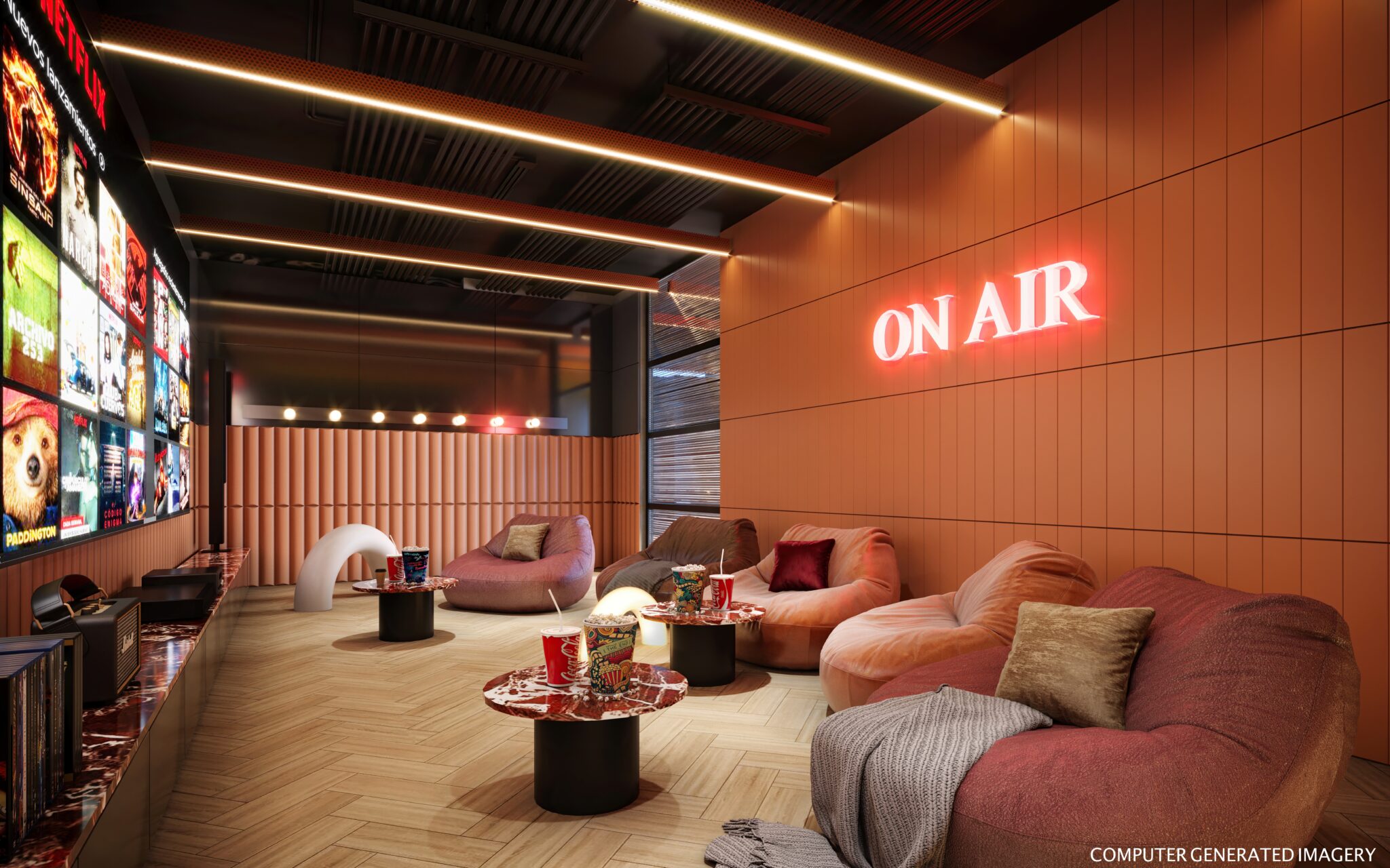 ส่วน Living Space เป็นส่วนแรกที่เปิดประตูเข้ามาเจอ ส่วนนี้โครงการวางโซฟา พร้อมโต๊ะวางของไว้ให้ อีกด้านให้เป็นโต๊ะวางทีวี ซึ่งระยะระหว่างโซฟา กับทีวีก็ห่างกัน สามารถติดทีวีขนาด 50 นิ้วได้ ไม่รู้สึกว่าใหญ่เกินไป แต่แนะนำว่าก่อนซื้ออย่าลืมวัดขนาดโต๊ะวางไปก่อน