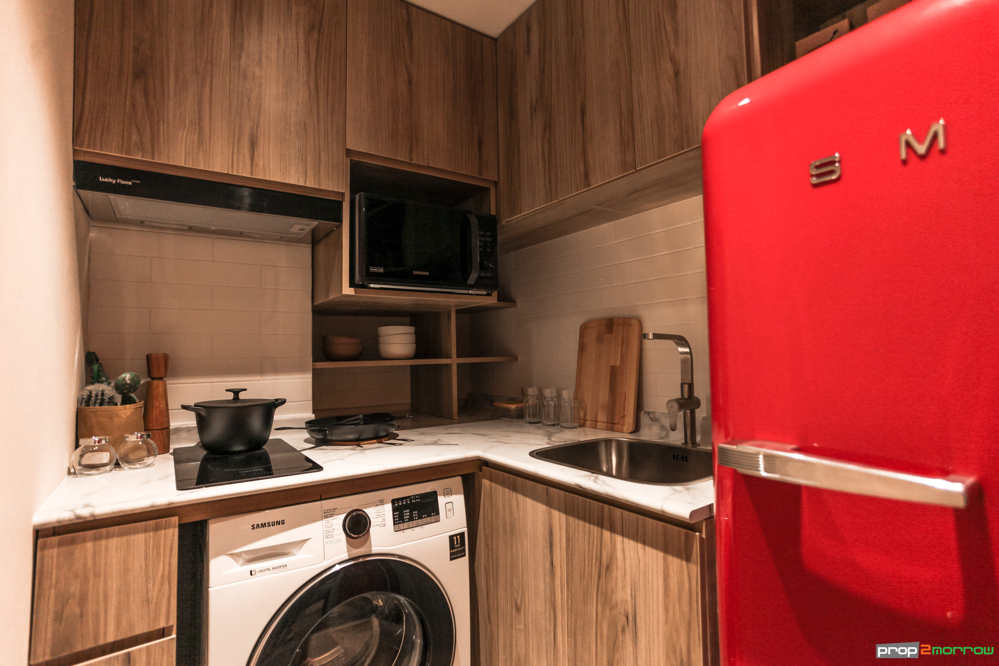 ห้องนี้ได้ห้องครัวเป็นแบบครัวปิด ได้ชุด Pantry Hob Hood Sink ส่วนของครัวติดกับระเบียง สามารถทำอาหาร และเปิดระเบียงเพื่อระบายอากาศได้