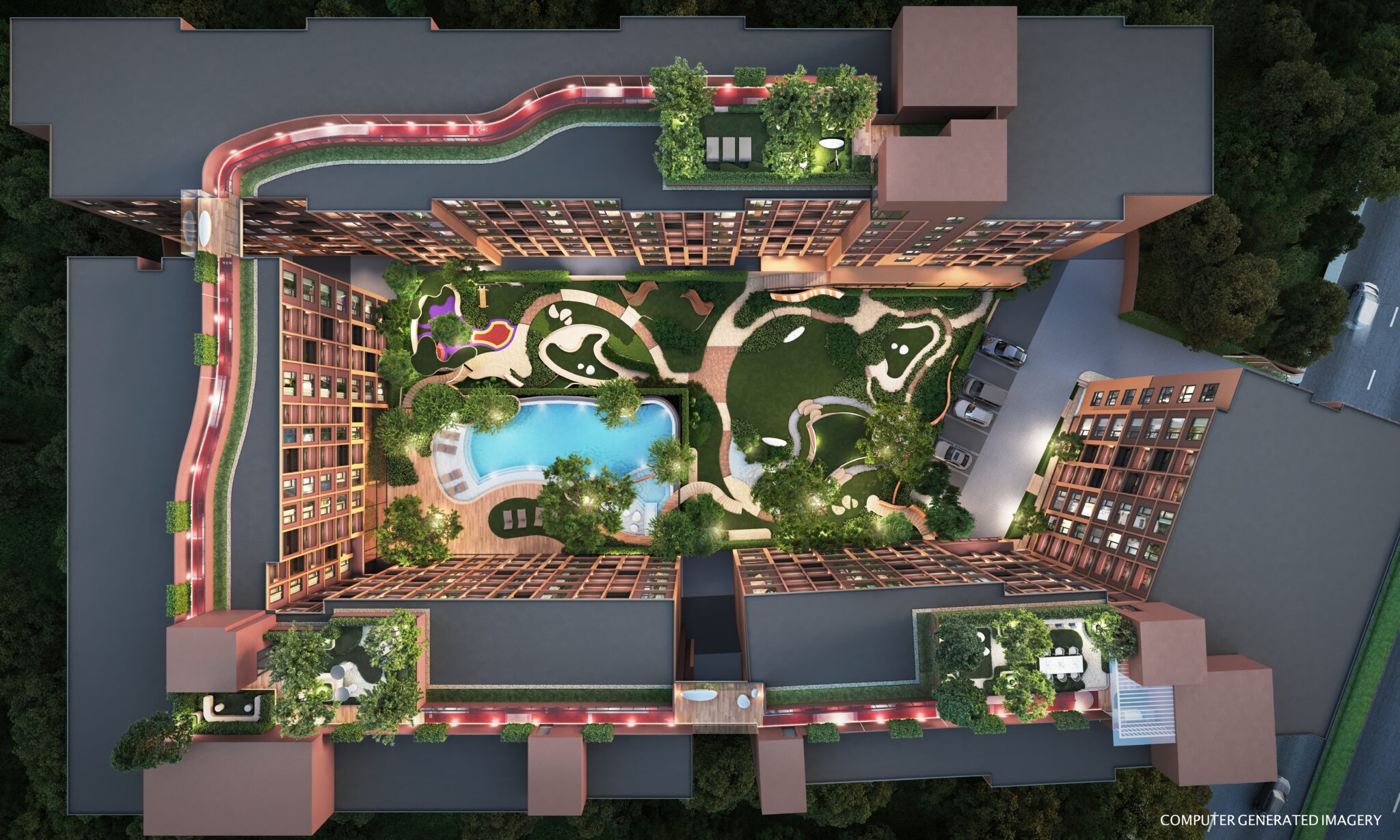 WONDER OF FACILITY ออกแบบพื้นที่ส่วนกลางอย่างรู้ใจ NEW GENERATION ให้พื้นที่ส่วนกลางขนาดใหญ่เกือบ 2 ไร่ โดยมีสวนขนาดใหญ่ประมาณ 1 ไร่