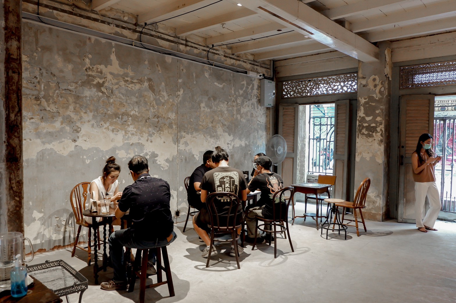 Patina café เปลี่ยนบ้านเก่าอายุ 200 ปี มาเป็นคาเฟ่ที่ได้รับความนิยมอยู่ตอนนี้ สถาปัตยกรรมที่นี่ผสมผสานระหว่างไทย และจีน จากจั่วหลังคาและหน้าต่างแบบไทย ผสานกับประตูทรงโค้ง และช่องลมฉลุลายสไตล์จีน เมื่อเดินเข้ามาได้กลิ่นอายความเป็นจีน ด้านในทางร้านทำเป็นบาร์เครื่องดื่ม มีบาริสต้าบรรจงทำเครื่องดื่มสุดพิเศษไว้คอยตอนรับ พร้อมกับตกแต่งด้วยเฟอร์นิเจอร์ย้อนยุคสไตล์จีนทำให้ที่นี่มีเสน่ห์น่าค้นหาจริงๆ