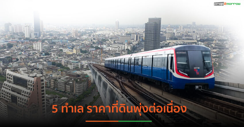 โดย 5 ทำเลที่ดินตามแนวรถไฟฟ้าที่มีอัตราการขยายตัวของราคาที่ดินเพิ่มสูงสุด ได้แก่