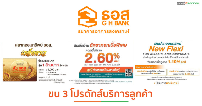 1.สินเชื่อบ้านอัตราดอกเบี้ยพิเศษ ดอกเบี้ยปีแรก 2.60% ต่อปีปีที่ 2 ดอกเบี้ยเท่ากับ MRR-3.35% ต่อปี ปีที่ 3 ดอกเบี้ยเท่ากับ MRR-2.80% ต่อปี (อัตราดอกเบี้ยเฉลี่ย 3 ปีแรกเพียง 2.917%) ปีที่ 4 จนถึงตลอดอายุสัญญาเงินกู้ กรณีลูกค้าสวัสดิการ อัตราดอกเบี้ย เท่ากับ MRR-1.00% ต่อปี และกรณีลูกค้ารายย่อยทั่วไป อัตราดอกเบี้ย เท่ากับ MRR-0.50% ต่อปี (ปัจจุบันอัตราดอกเบี้ย MRR ธอส. เท่ากับ 6.150% ต่อปี) กรณีกู้ 1 ล้านบาท ผ่อนชำระเริ่มต้นปีแรกเพียง 3,400 บาท/เดือนเท่านั้น วัตถุประสงค์การให้กู้ครอบคลุมทุกวัตถุประสงค์หลัก อาทิ เพื่อซื้อ ปลูกสร้าง ต่อเติม ขยาย ซ่อมแซม ซื้อที่ดินเปล่าที่เป็นทรัพย์ NPA ของ ธอส. และไถ่ถอนจำนองจากสถาบันการเงินอื่น ทั้งนี้ เฉพาะที่อยู่อาศัยในพื้นที่กรุงเทพฯ นนทบุรี ปทุมธานี และสมุทรปราการ เท่านั้น จองสิทธิ์สินเชื่อภายในงาน ยื่นคำขอกู้ระหว่างวันที่ 10 มีนาคม – 9 เมษายน 2564 ทำนิติกรรมภายในวันที่ 31 พฤษภาคม 2564