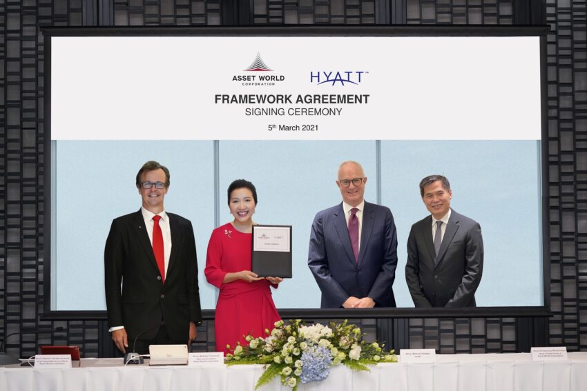 แอสเสท เวิรด์ คอร์ปอเรชั่น หรือ AWC ผู้พัฒนาอสังหาริมทรัพย์ชั้นนำของไทยที่มุ่งเน้นตอบสนองไลฟ์สไตล์แบบครบวงจร และไฮแอท โฮเทลส์ คอร์ปอเรชั่น (Hyatt Hotels Corporation) (NYSE:H) ร่วมลงนามในสัญญาครั้งสำคัญเพื่อพัฒนาและบริหารโรงแรมใหม่ ๆ ภายใต้แบรนด์ไฮแอทในทำเลต่าง ๆ ทั่วประเทศไทย การลงนามสัญญาครั้งนี้คาดว่าจะนำไปสู่การพัฒนาโรงแรมภายใต้แบรนด์ต่าง ๆ ของเครือไฮแอท จำนวนรวมกว่า 1,000 ห้อง เพื่อนำเสนอตัวเลือกโรงแรมและประสบการณ์อันหลากหลายยิ่งขึ้นให้แขกผู้มาพัก ลูกค้า และสมาชิก World of Hyatt ในจุดหมายปลายทางการท่องเที่ยวสำคัญทั่วประเทศไทย ซึ่งจะเป็นการสร้างความแข็งแกร่ง ยกระดับการท่องเที่ยวของประเทศ รวมทั้งอุตสาหกรรมโรงแรมระดับโลกของไทยให้โดดเด่นยิ่งขึ้น เพื่อเตรียมความพร้อมต้อนรับการกลับมาของนักท่องเที่ยวจากทั่วโลกที่เดินทางเข้ามาทั้งเพื่อประกอบธุรกิจ และพักผ่อนหย่อนใจ อีกทั้งยังเพิ่มศักยภาพให้ AWC เป็นหนึ่งในเจ้าของโรงแรมแบรนด์ในเครือไฮแอทรายใหญ่ของประเทศไทยอีกด้วย